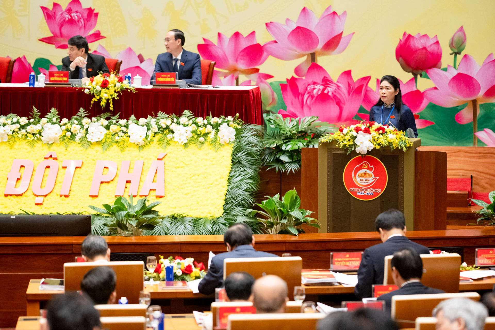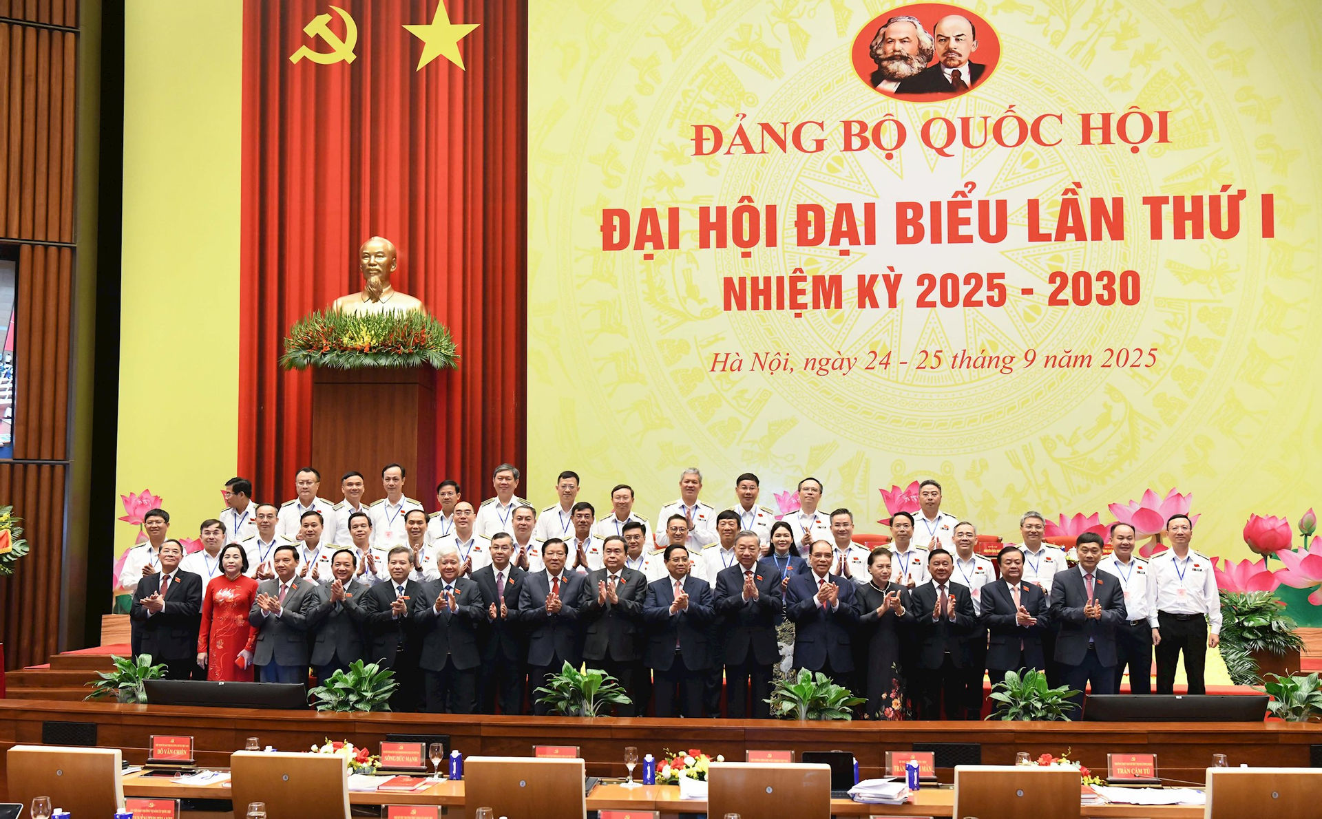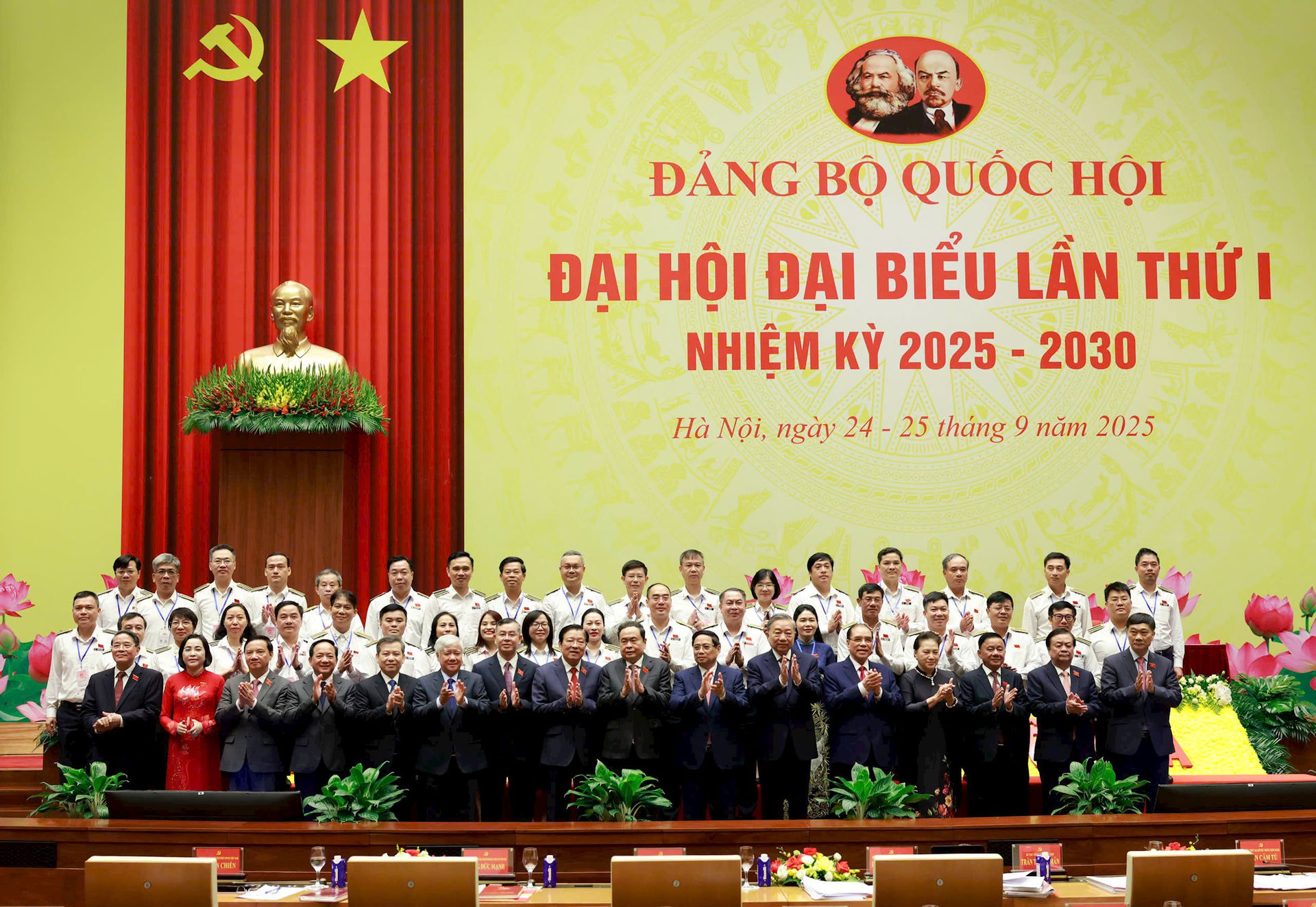 Đại hội đại biểu Đảng bộ Quốc hội lần thứ I, nhiệm kỳ 2025-2030 diễn ra trong 2 ngày 24 và 25/9, tại Hội trường Diên Hồng, Nhà Quốc hội, Thủ đô Hà Nội. Phiên chính thức diễn ra sáng 25/9 có sự tham dự của 297 đại biểu, là các đảng viên tiêu biểu đại diện cho 2.804 đảng viên đang sinh hoạt tại 11 đảng bộ trực thuộc Đảng bộ Quốc hội.