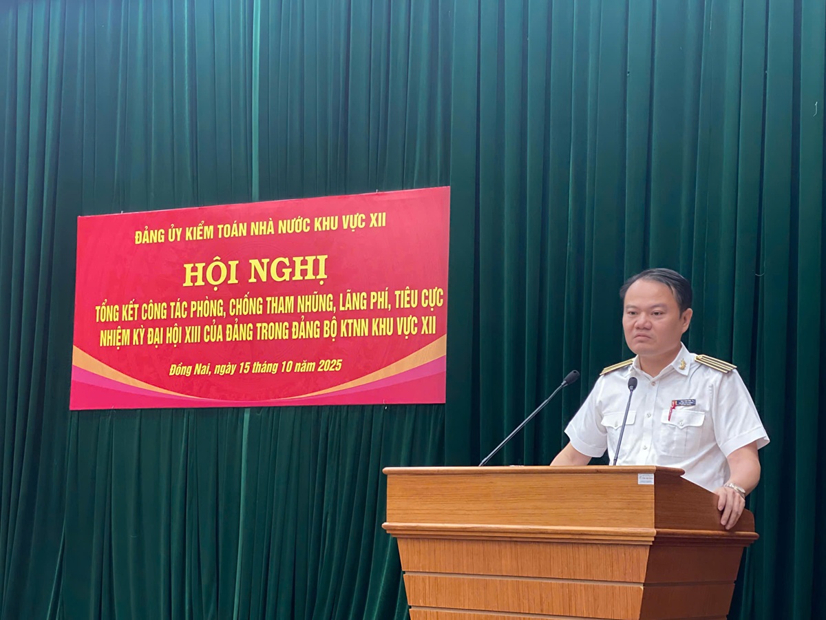 Tại Hội nghị, đồng chí Mai Văn Tân - Phó Kiểm toán trưởng KTNN khu vực XII - đã trình bày Báo cáo tổng kết công tác PCTNLPTC nhiệm kỳ Đại hội XIII của Đảng trong Đảng bộ KTNN khu vực XII.