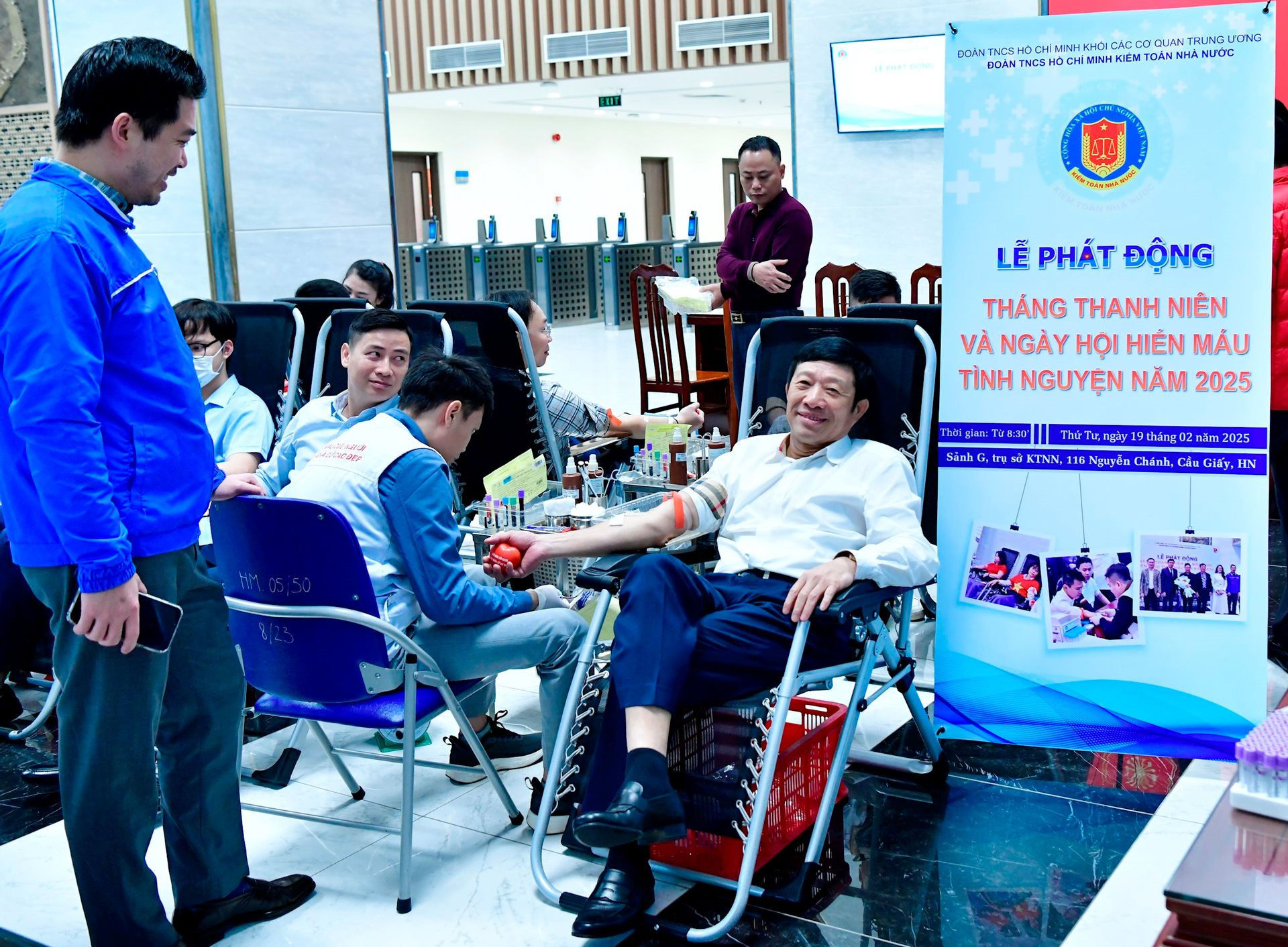 Vụ trưởng Vụ TCCB Đỗ Văn Tạo tham gia hiến máu tại Ngày hội Hiến máu tình nguyện "Giọt hồng - Giọt yêu thương" năm 2025. Ảnh: TL