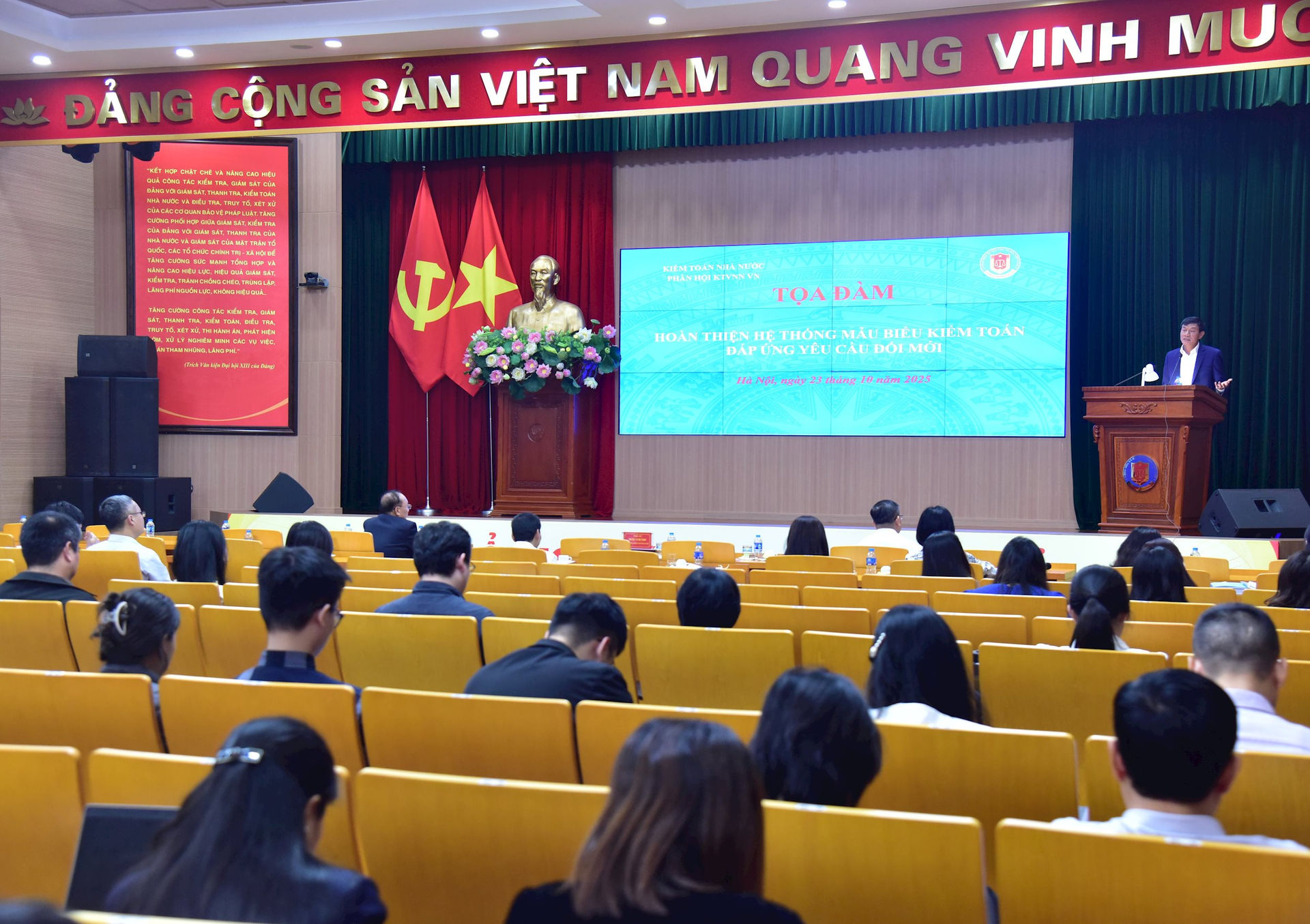 (sav.gov.vn) - Đó là một trong những yêu cầu của Phó Tổng Kiểm toán nhà nước Doãn Anh Thơ đối với việc xây dựng Hệ thống mẫu biểu kiểm toán (MBKT) tại Tọa đàm Hoàn thiện hệ thống MBKT đáp ứng yêu cầu đổi mới do Phân hội Kiểm toán viên nhà nước và Vụ Chế độ và Kiểm soát chất lượng kiểm toán (KSCLKT) phối hợp tổ chức sáng 23/10.