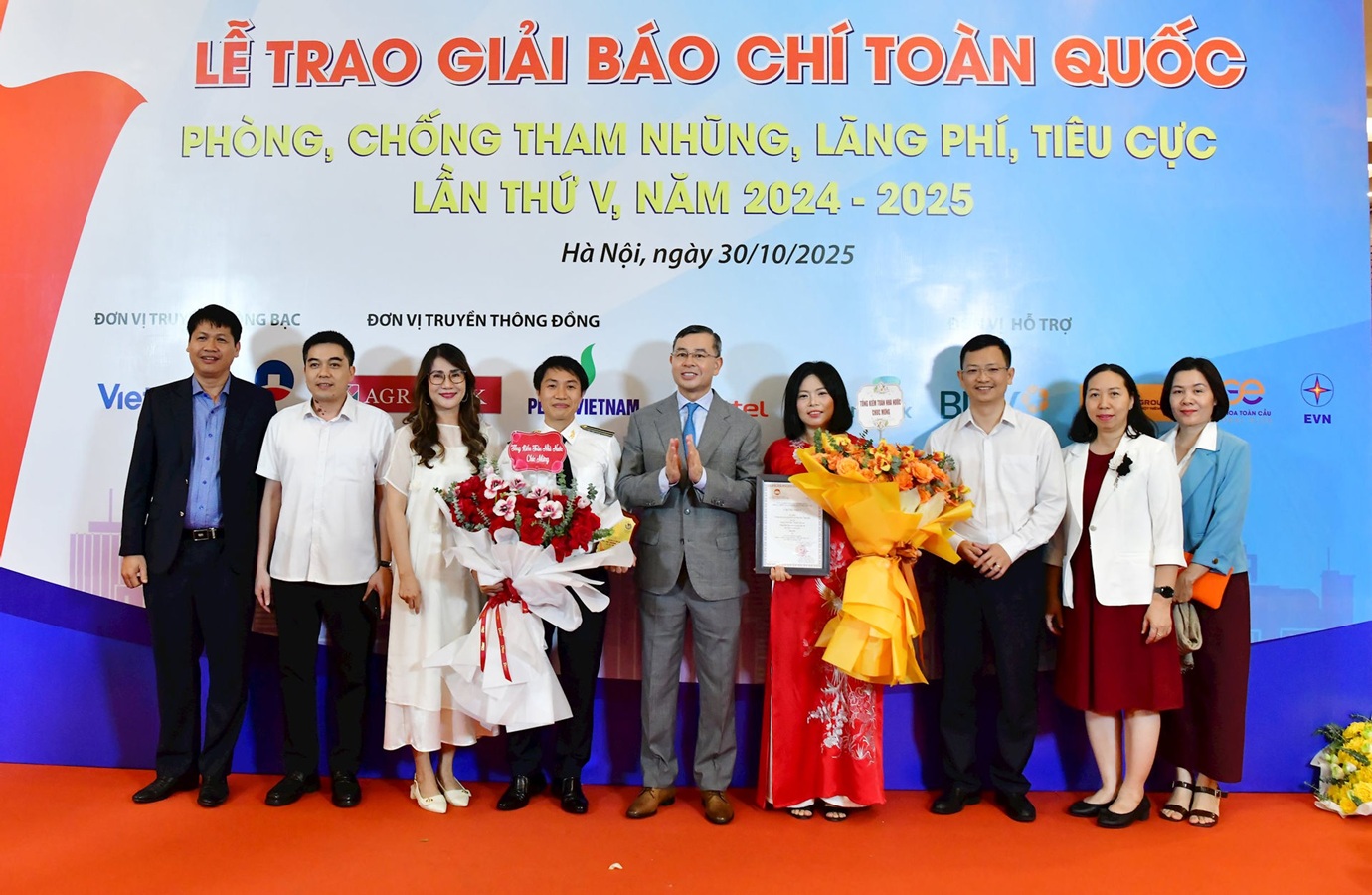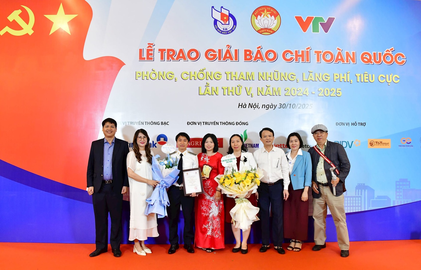 (sav.gov.vn) - Tối 30/10, tại Hà Nội, Ủy ban Trung ương Mặt trận Tổ quốc Việt Nam phối hợp Hội Nhà báo Việt Nam, Đài Truyền hình Việt Nam tổ chức Lễ trao Giải báo chí toàn quốc Phòng, chống tham nhũng, lãng phí, tiêu cực lần thứ V, năm 2024-2025. Vượt qua hơn 1.100 tác phẩm, loạt bài “Chống lãng phí trong lĩnh vực khoa học, công nghệ” của Nhóm tác giả Nguyễn Thị Hồng và Nguyễn Văn Lộc (Báo Kiểm toán) đã xuất sắc đạt giải A (không có giải Đặc biệt) Giải Báo chí toàn quốc Phòng, chống tham nhũng, lãng phí, tiêu cực lần thứ V, năm 2024-2025.