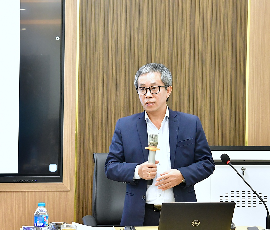 Phó Kiểm toán trưởng KTNN chuyên ngành II Phan Trường Giang giảng Chuyên đề Tổng quan về kiểm toán công nghệ thông tin. Ảnh: N.Ly