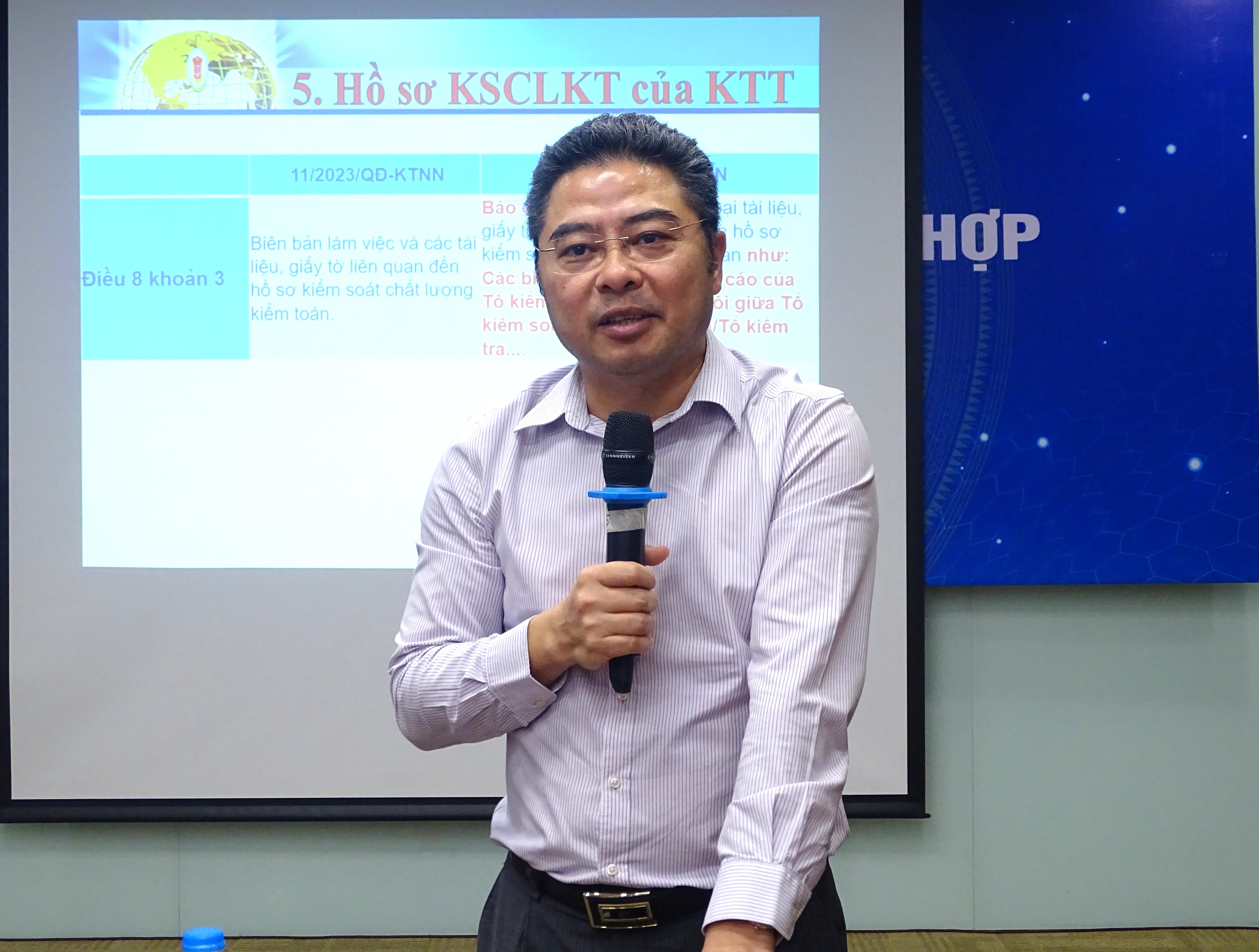 Phát biểu tại buổi đào tạo, Phó Kiểm toán trưởng Lại Xuân Nghị cho biết, trong bối cảnh chuyển đổi số quốc gia đang diễn ra mạnh mẽ cũng như yêu cầu về cải tiến quy trình làm việc, thời gian qua KTNN thường xuyên rà soát hệ thống quy định, ban hành các văn bản pháp luật, văn bản quản lý mới để cập nhật, bổ sung các quy định, quy chế, nhằm nâng cao chất lượng hoạt động kiểm toán. Theo đó, việc hiểu đúng, nắm chắc các quy định mới ban hành là yêu cầu quan trọng đối với mỗi công chức, kiểm toán viên để có thể áp dụng đúng trong quá trình thực thi công vụ.