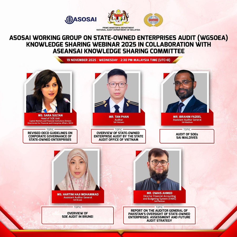 (sav.gov.vn) - Vừa qua, Nhóm công tác về Kiểm toán doanh nghiệp nhà nước (DNNN) của Tổ chức Các cơ quan Kiểm toán tối cao châu Á (ASOSAI WGSOEA) phối hợp với Ủy ban Chia sẻ kiến thức ASEANSAI (KSC) tổ chức Hội thảo trực tuyến chia sẻ kiến thức 2025 về kiểm toán DNNN, thu hút hơn 250 đại biểu là thành viên của ASOSAI WGSOEA và ASEANSAI KSC.