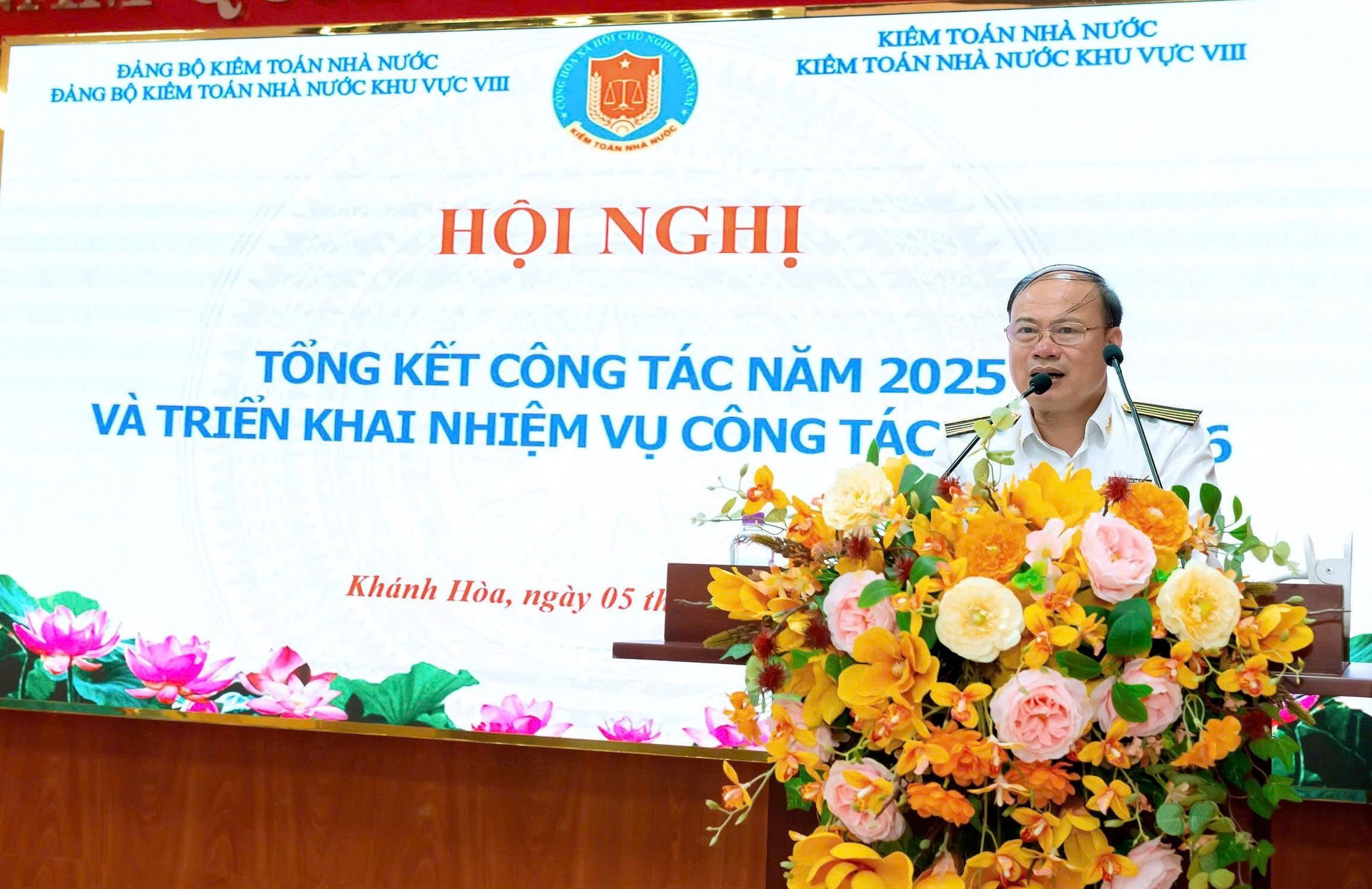 (sav.gov.vn) - Chiều 05/12, tại phường Nha Trang, tỉnh Khánh Hòa, Kiểm toán nhà nước (KTNN) khu vực VIII tổ chức Hội nghị tổng kết công tác và công tác Đảng năm 2025, phương hướng nhiệm vụ, chương trình công tác năm 2026 và Lễ trao tặng Huy hiệu 30 năm tuổi Đảng cho đồng chí Nguyễn Văn Giám.
