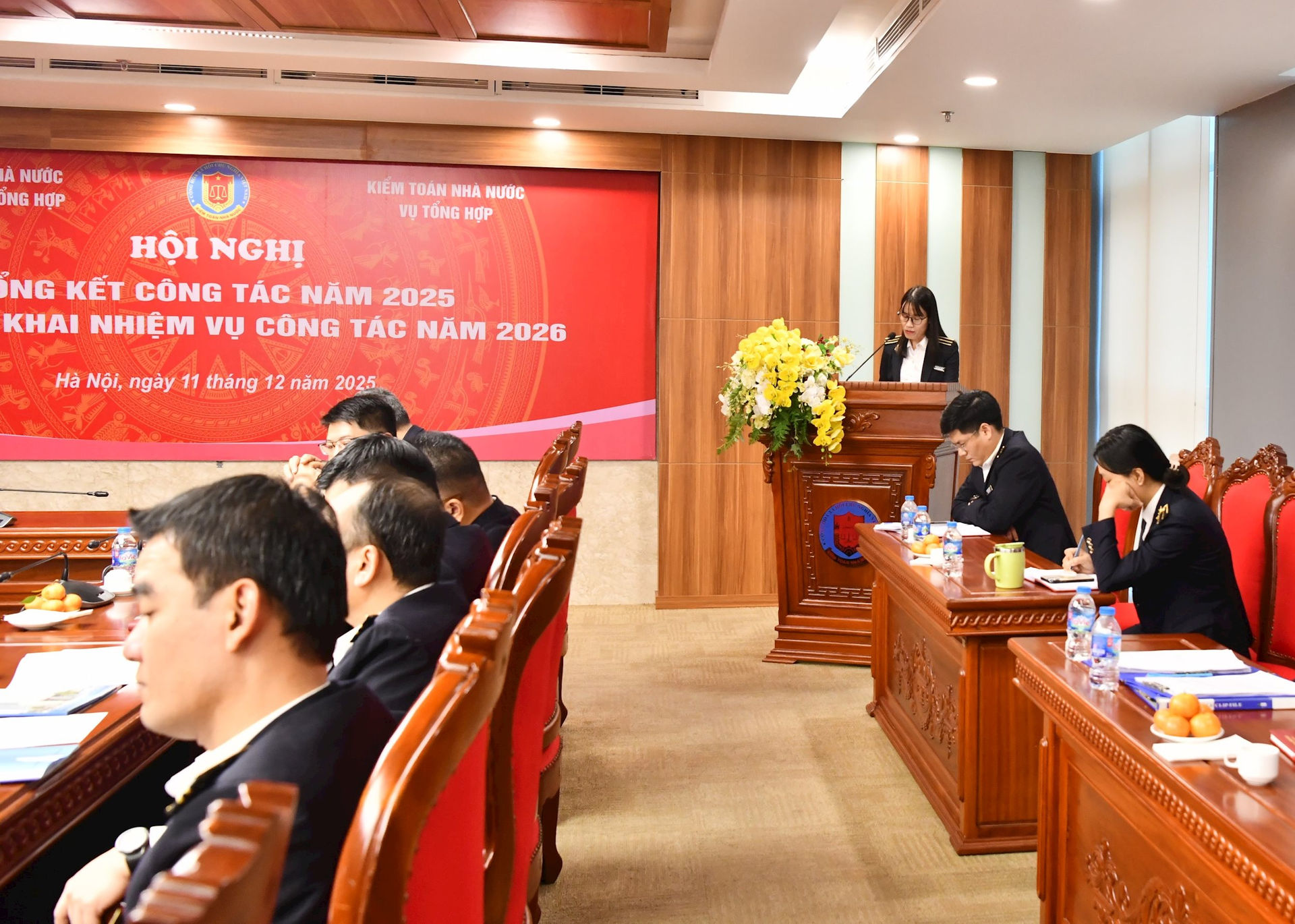 Phát biểu chỉ đạo Hội nghị, Phó Tổng Kiểm toán nhà nước Trần Minh Khương đã biểu dương và đánh giá cao những kết quả mà Vụ Tổng hợp đạt được trong năm 2025. Vụ Tổng hợp đã hoàn thành tốt và hoàn thành xuất sắc các nhiệm vụ tham mưu, điển hình như tham mưu ban hành KHKT năm; phương án tổ chức KHKT năm 2025 của toàn Ngành; tham mưu ban hành hướng dẫn nội dung và trọng tâm kiểm toán năm 2025 - năm có nhiều biến động khi thực hiện sắp xếp, tinh gọn bộ máy và tổ chức chính quyền 3 cấp, có sự cắt giảm, điều chỉnh, bổ sung các cuộc kiểm toán, nội dung kiểm toán…