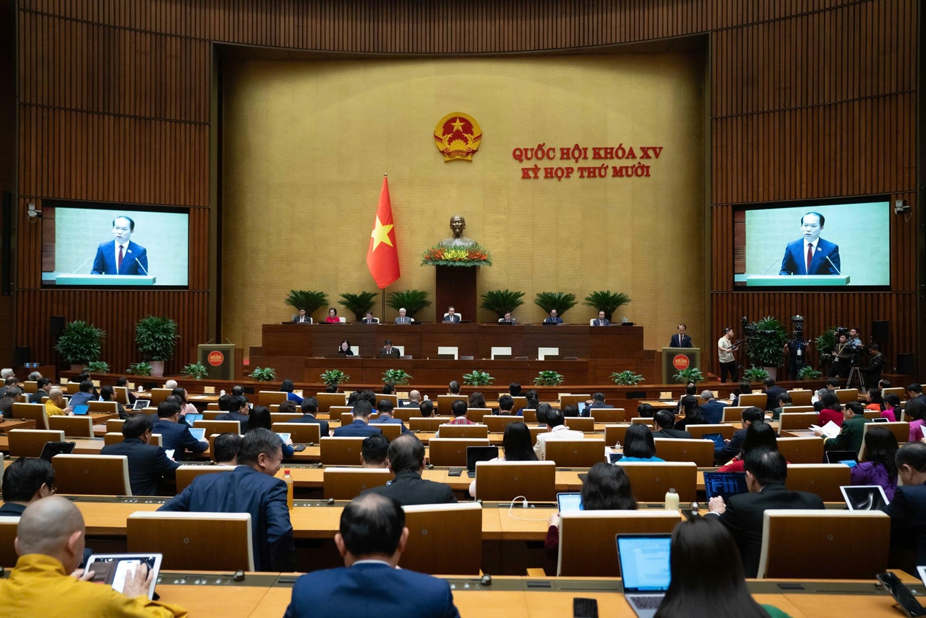 (sav.gov.vn) - Chiều 11/12, tại Phiên bế mạc Kỳ họp thứ 10, Quốc hội khóa XV, với 98,73% đại biểu Quốc hội có mặt biểu quyết tán thành, Quốc hội đã thông qua Nghị quyết về công tác nhiệm kỳ 2021-2026 của Quốc hội, các cơ quan của Quốc hội, Chủ tịch nước, Chính phủ, Tòa án nhân dân tối cao, Viện kiểm sát nhân dân tối cao và Kiểm toán nhà nước.