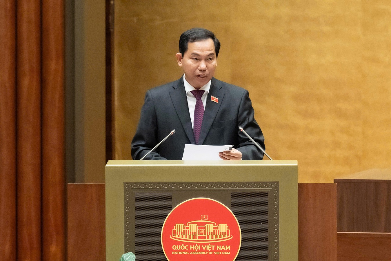 Tổng Thư ký Quốc hội , Chủ nhiệm Văn phòng Quốc hội Lê Quang Mạnh trình bày Dự thảo Nghị quyết Kỳ họp thứ 10 trình Quốc hội thông qua. Ảnh: VPQH