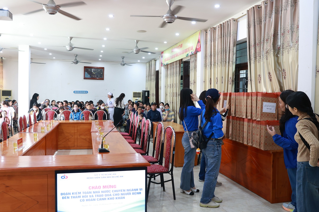 Đoàn công tác đã trao tặng 60 suất quà cho các bệnh nhi có hoàn cảnh khó khăn đang điều trị tại Bệnh viện Sản Nhi Nghệ An. Mỗi suất quà đều chứa đựng tình cảm, sự quan tâm và sẻ chia sâu sắc của tập thể lãnh đạo, công chức và Đoàn Thanh niên KTNN chuyên ngành VI.