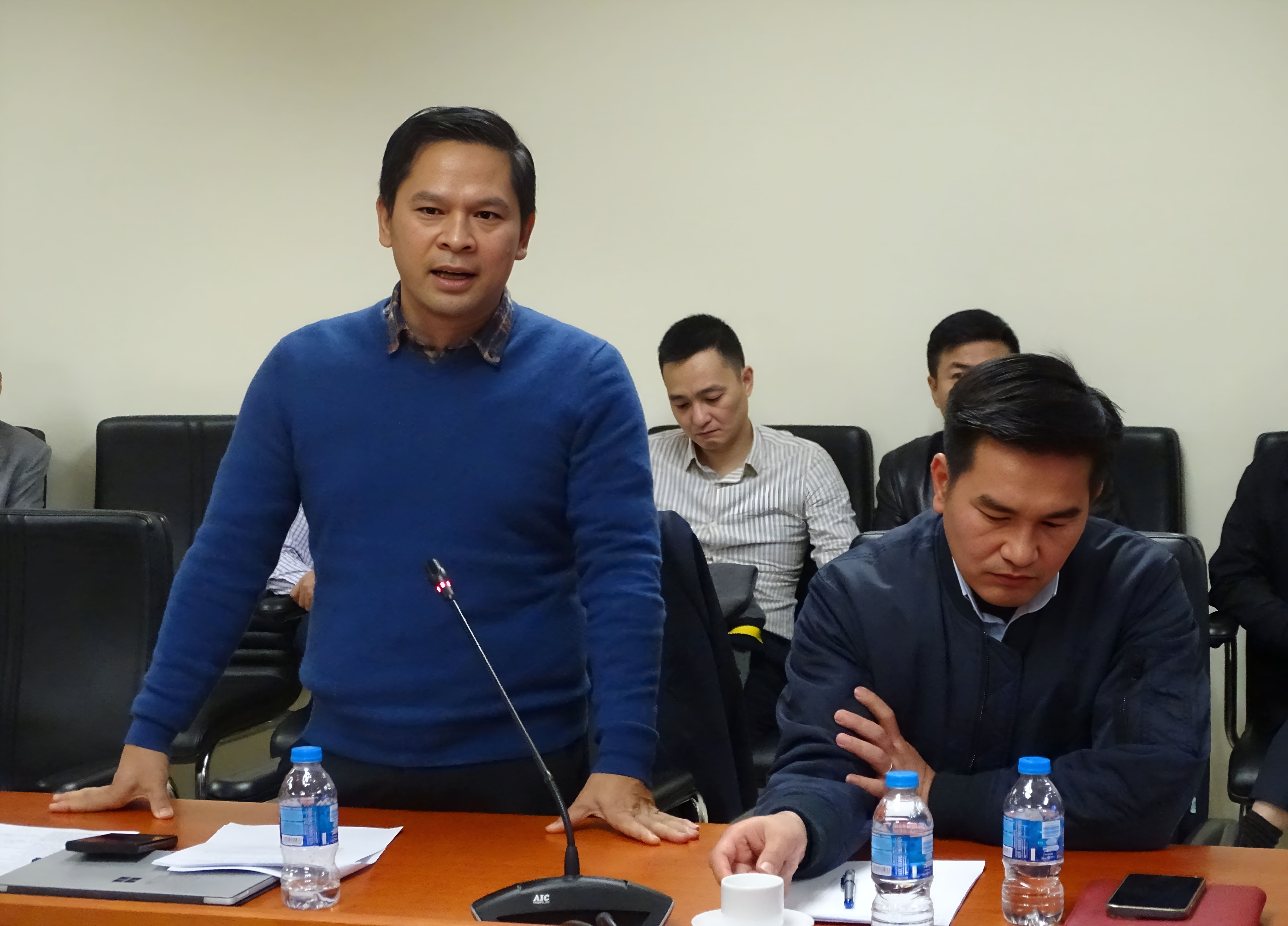 Thượng tá, PGS,TS. Phạm Tiến Dũng - Trưởng Khoa Cảnh sát điều tra tội phạm về tham nhũng, kinh tế, buôn lậu, môi trường, Học viện Cảnh sát nhân dân trao đổi tại buổi tập huấn