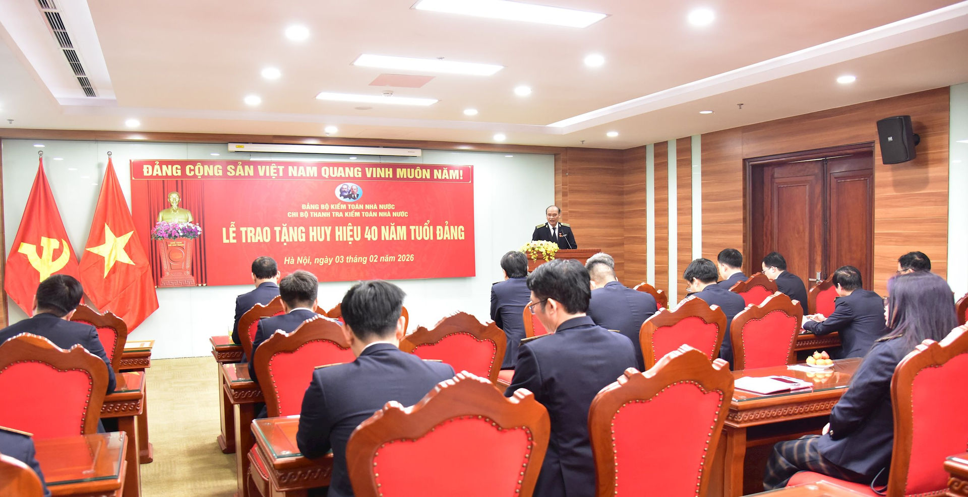 (sav.gov.vn) - Nhân Kỷ niệm 96 năm Ngày thành lập Đảng Cộng sản Việt Nam (3/2/1930 - 3/2/2026), chiều 03/02, Chi bộ Thanh tra Kiểm toán nhà nước (KTNN) tổ chức trao Huy hiệu 40 năm tuổi Đảng tặng đảng viên Nguyễn Văn Quốc - Phó Chánh Thanh tra KTNN.