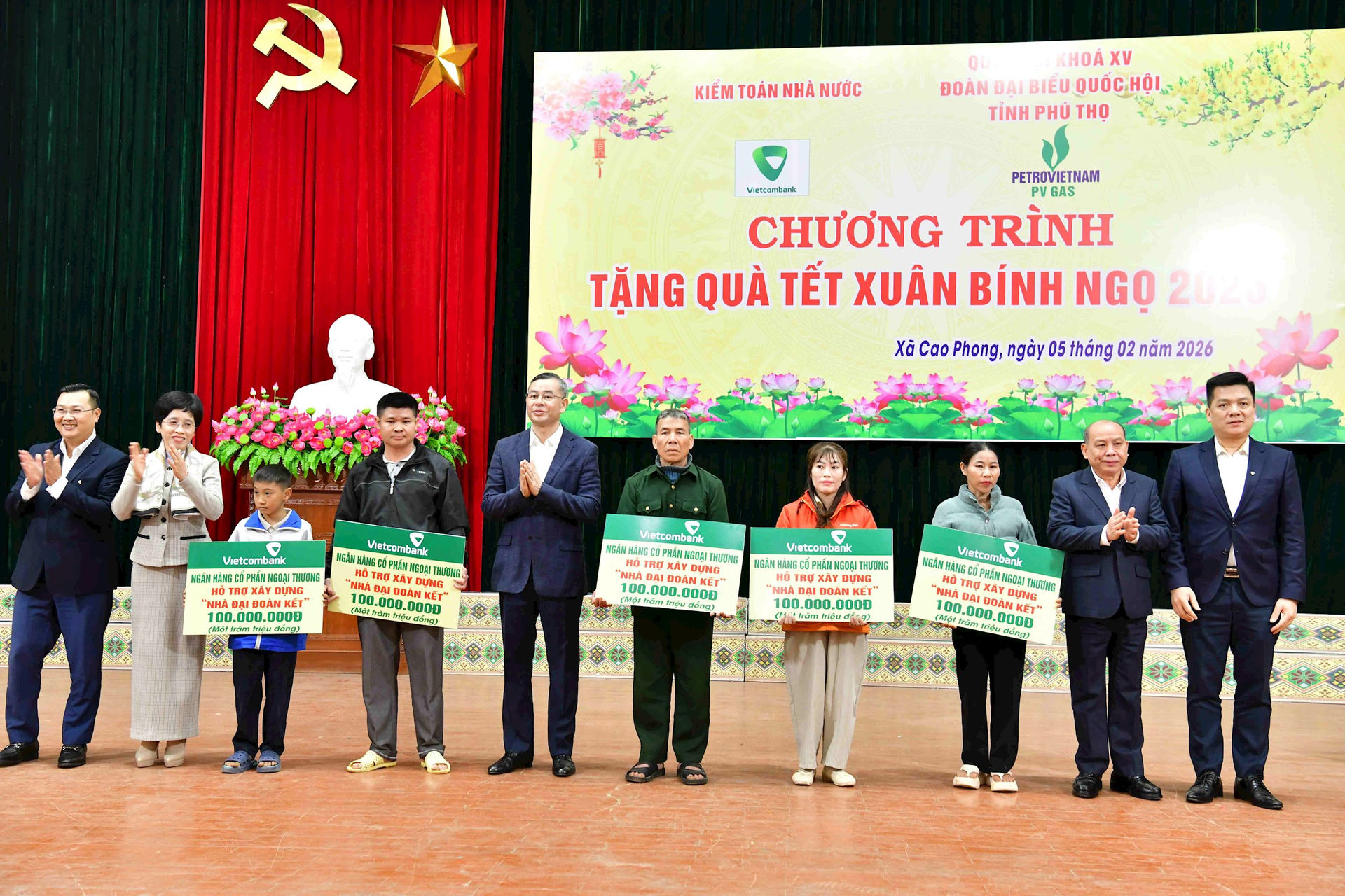 (sav.gov.vn) - Nhân dịp xuân Bính Ngọ 2026, Ủy viên Ban Chấp hành Trung ương Đảng, Ủy viên Ban Thường vụ Đảng ủy Quốc hội, Tổng Kiểm toán nhà nước Ngô Văn Tuấn và Đoàn đại biểu Quốc hội tỉnh Phú Thọ tổ chức thăm, tặng quà cho các đối tượng hộ nghèo; người có uy tín; công nhân, học sinh có hoàn cảnh khó khăn tại các xã: Cao Phong, Mường Thàng, Lạc Sơn, Đại Đồng, Quyết Thắng, Thượng Cốc, Yên Phú (tỉnh Phú Thọ).