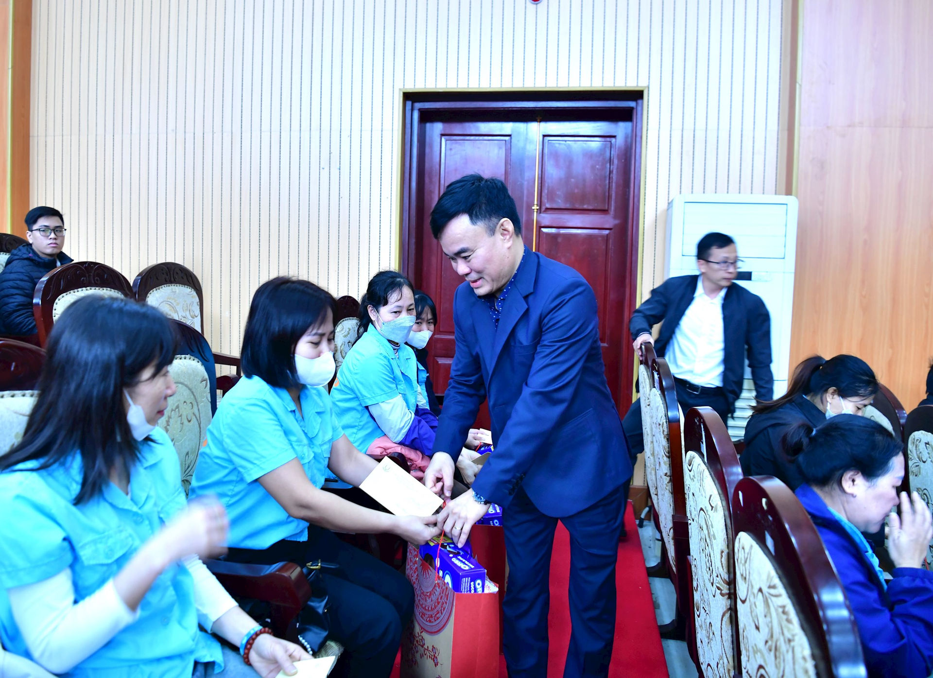 Đoàn công tác tặng 400 suất quà Tết cho hộ nghèo, hộ cận nghèo, hộ có hoàn cảnh khó khăn, công nhân, người lao động có hoàn cảnh khó khăn trên địa bàn xã Liên Bão (tỉnh Bắc Ninh). Ảnh: HỒNG NHUNG