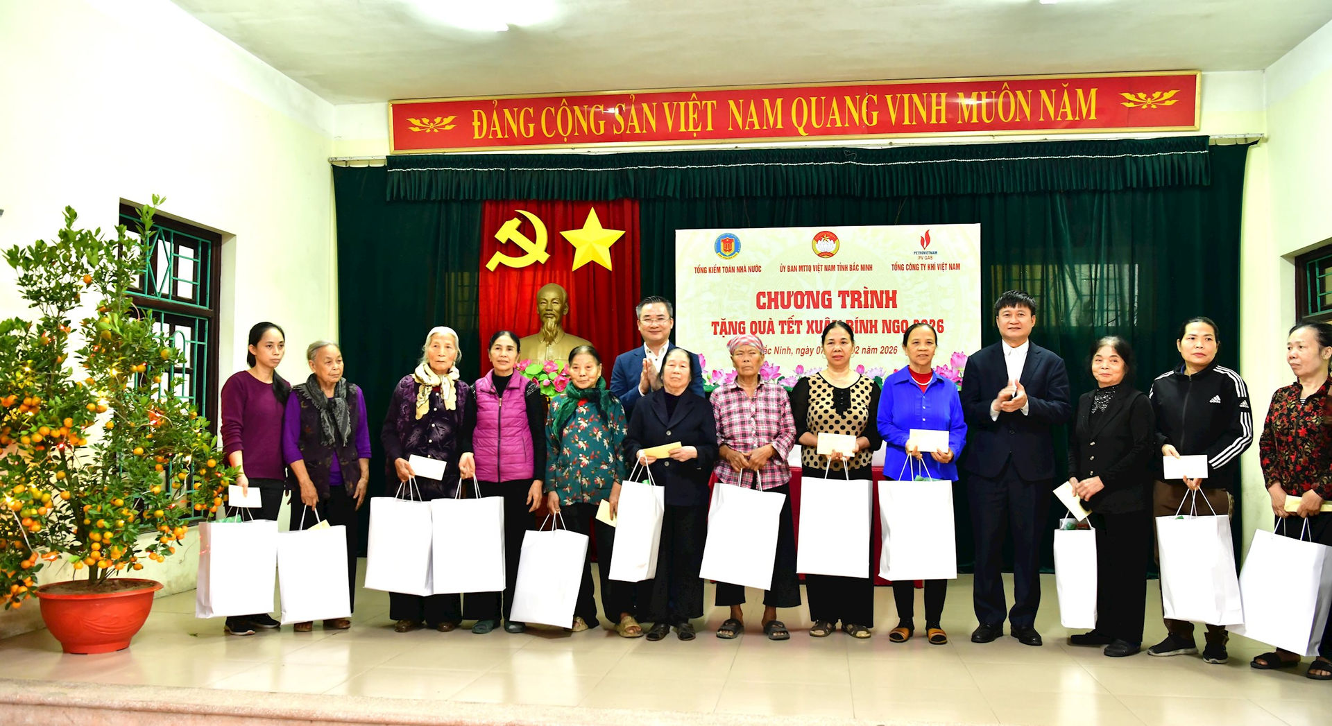 (sav.gov.vn) - Ngày 07/02, Kiểm toán nhà nước (KTNN) phối hợp với Ủy ban Mặt trận Tổ quốc (MTTQ) Việt Nam 2 tỉnh Hưng Yên, Bắc Ninh và Tổng Công ty Khí Việt Nam (PV GAS) tặng 700 suất quà Tết cho các gia đình chính sách, người cao tuổi, hộ nghèo, hộ cận nghèo, công nhân, người lao động có hoàn cảnh khó khăn trên địa bàn 2 xã Yên Mỹ và Liên Bão nhân dịp Xuân Bính Ngọ 2026.