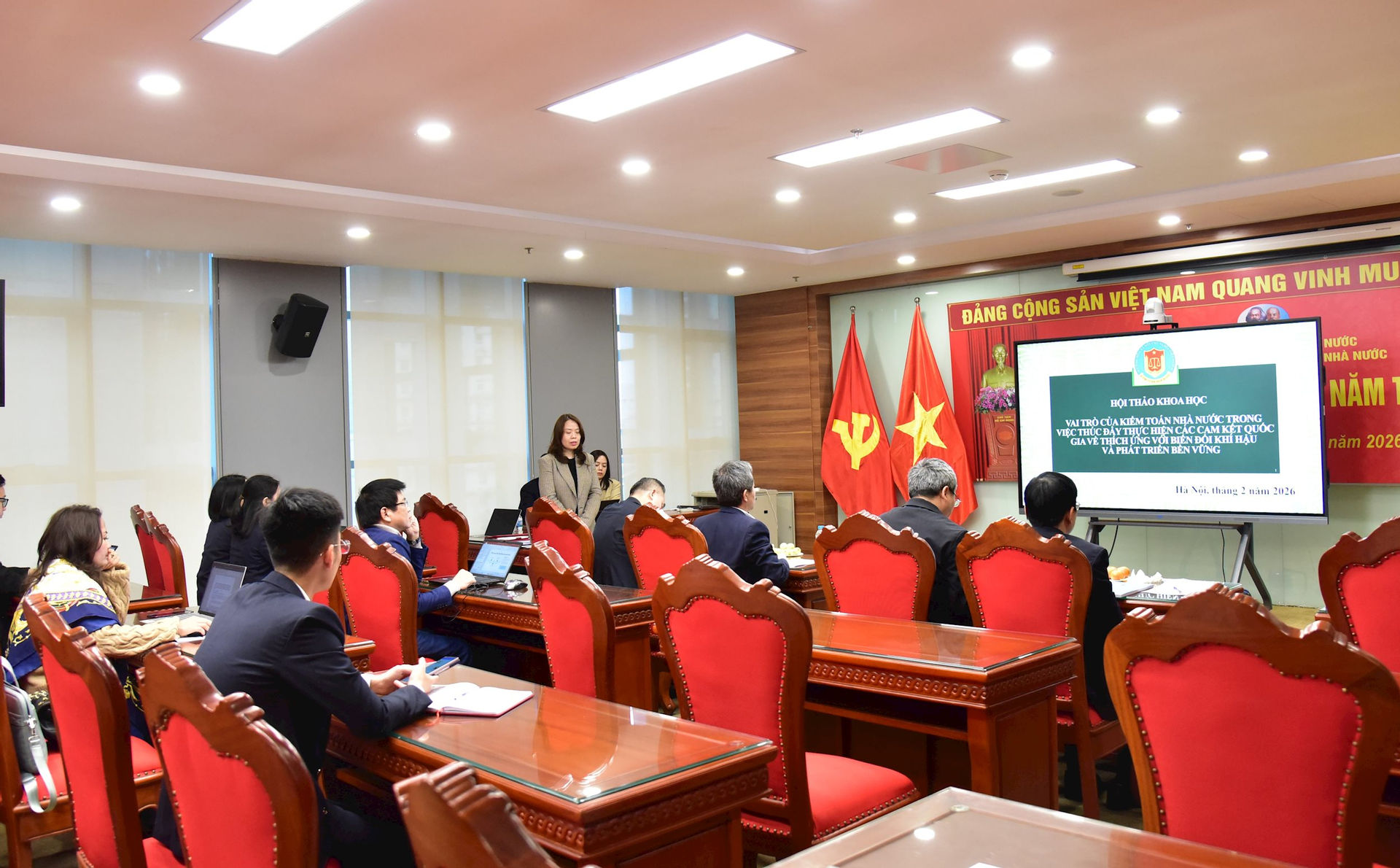 (sav.gov.vn) - Biến đổi khí hậu (BĐKH) và yêu cầu thực hiện các cam kết phát triển bền vững (PTBV) đang đặt ra những đòi hỏi mới đối với hoạt động kiểm toán. Tại Hội thảo khoa học chiều 09/02, nhiều ý kiến chuyên gia đã tập trung phân tích vai trò của Kiểm toán nhà nước (KTNN) trong việc thúc đẩy thực hiện các cam kết quốc gia về lĩnh vực này.