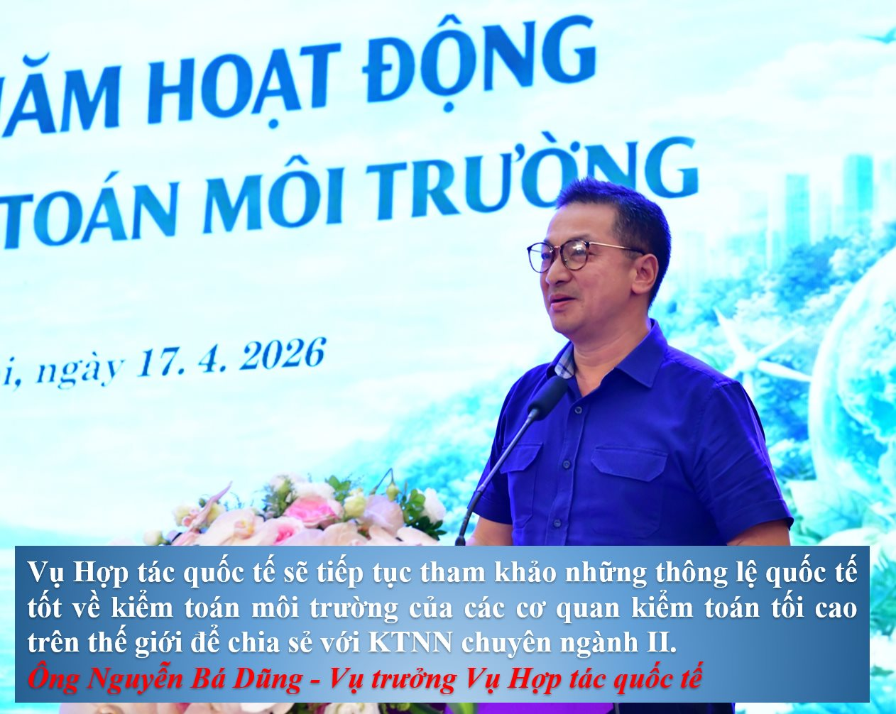 Từ năm 2025 đến nay, KTMT được triển khai tại KTNN chuyên ngành II, với định hướng đẩy mạnh ứng dụng công nghệ, đặc biệt là khai thác dữ liệu trong kiểm toán môi trường.
