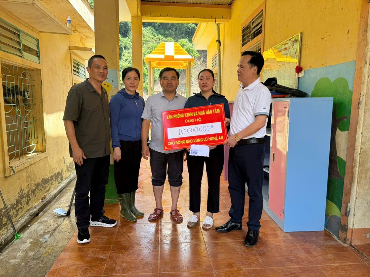 Đoàn công tác của Văn phòng KTNN do ông Nguyễn Hữu Minh - Phó Chánh văn phòng KTNN làm trưởng đoàn đã trực tiếp đến các xã chịu thiệt hại nặng nề do lũ lụt, bao gồm: Chiêu Lưu, Hữu Kiệm, Mường Xén, Mường Típ, Bắc Lý và Mỹ Lý thuộc tỉnh Nghệ An. Tại đây, đoàn đã tổ chức thăm hỏi, động viên và trao tặng hàng trăm suất quà với tổng giá trị hỗ trợ lên đến hơn 760 triệu đồng, bao gồm cả hiện vật và tiền mặt.