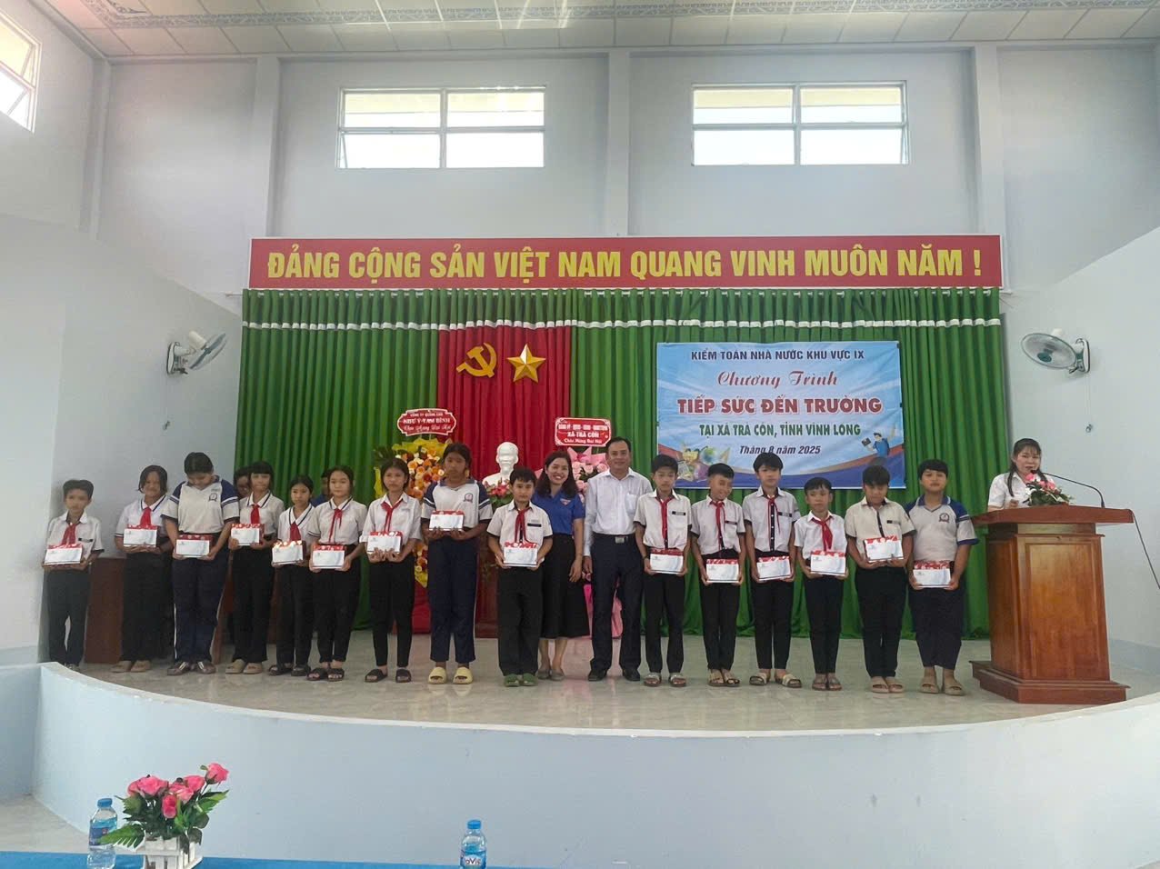 Phát huy tinh thần tình nguyện tại chỗ - Tuổi trẻ KTNN khu vực IX hướng về các em, nâng bước tới trường (sav.gov.vn) - Sinh thời Chủ tịch Hồ Chí Minh luôn dành cho thiếu niên, nhi đồng tình yêu thương đặc biệt và niềm tin vào khả năng kế tục xuất sắc sự nghiệp cách mạng của cha ông. Người dạy: “Thiếu niên, nhi đồng là người chủ tương lai của nước nhà”. Học tập và làm theo lời Bác, Chi đoàn Kiểm toán nhà nước (viết tắt KTNN) khu vực IX tích cực đẩy mạnh các hoạt động hướng đến thiếu niên nhi đồng, đặc biệt các em có hoàn cảnh khó khăn nhằm góp phần cùng Đảng, Nhà nước thực hiện tốt di huấn của Bác. Là một trong 6 tỉnh thuộc địa bàn kiểm toán của KTNN khu vực IX, Vĩnh Long có vị trí địa lý và điều kiện tự nhiên khá thuận lợi để phát triển kinh tế. Song, do địa hình hệ thống sông ngòi chằng chịt, một vài nơi của Tỉnh vẫn còn các hộ gia đình có hoàn cảnh khó khăn, ngày ngày nhọc nhằn với ước mơ cùng con/em “học để thoát nghèo”, “học để phát triển”.