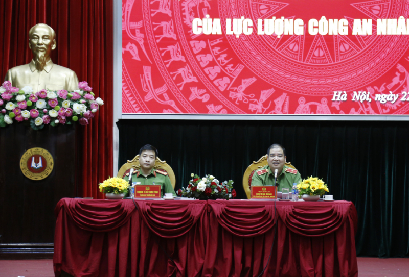 Thiếu tướng, TS Chử Văn Dũng - Phó Giám đốc Học viện CSND và Thượng tá, ThS. Vũ Thanh Tùng - Phó Cục trưởng Cục Cảnh sát điều tra tội phạm về tham nhũng, kinh tế, buôn lậu - đồng chủ trì Hội thảo. Ảnh: ST