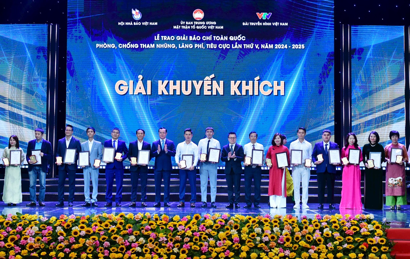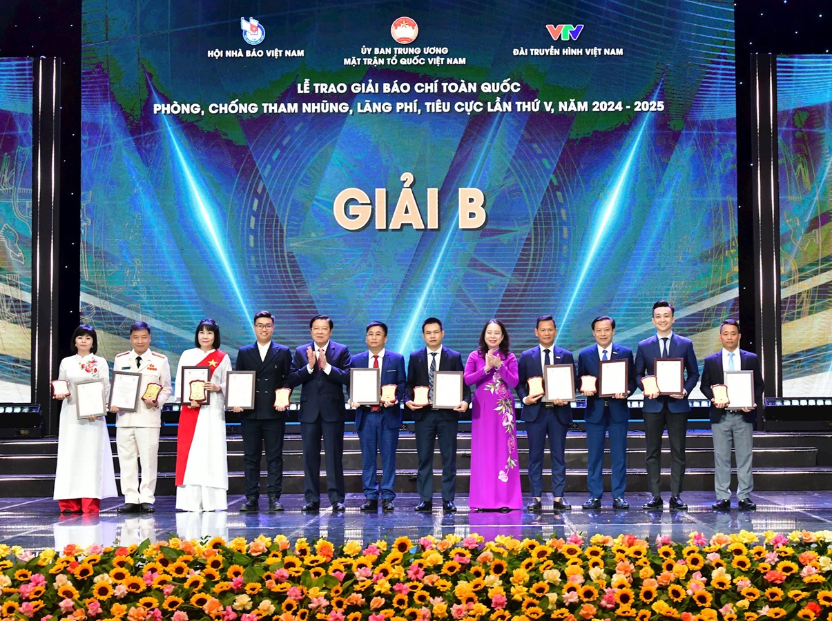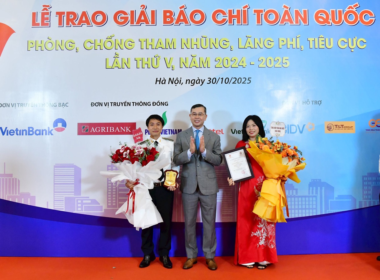 (sav.gov.vn) - Tối 30/10, tại Hà Nội, Ủy ban Trung ương Mặt trận Tổ quốc Việt Nam phối hợp Hội Nhà báo Việt Nam, Đài Truyền hình Việt Nam tổ chức Lễ trao Giải báo chí toàn quốc Phòng, chống tham nhũng, lãng phí, tiêu cực lần thứ V, năm 2024-2025. Vượt qua hơn 1.100 tác phẩm, loạt bài “Chống lãng phí trong lĩnh vực khoa học, công nghệ” của Nhóm tác giả Nguyễn Thị Hồng và Nguyễn Văn Lộc (Báo Kiểm toán) đã xuất sắc đạt giải A (không có giải Đặc biệt) Giải Báo chí toàn quốc Phòng, chống tham nhũng, lãng phí, tiêu cực lần thứ V, năm 2024-2025.
