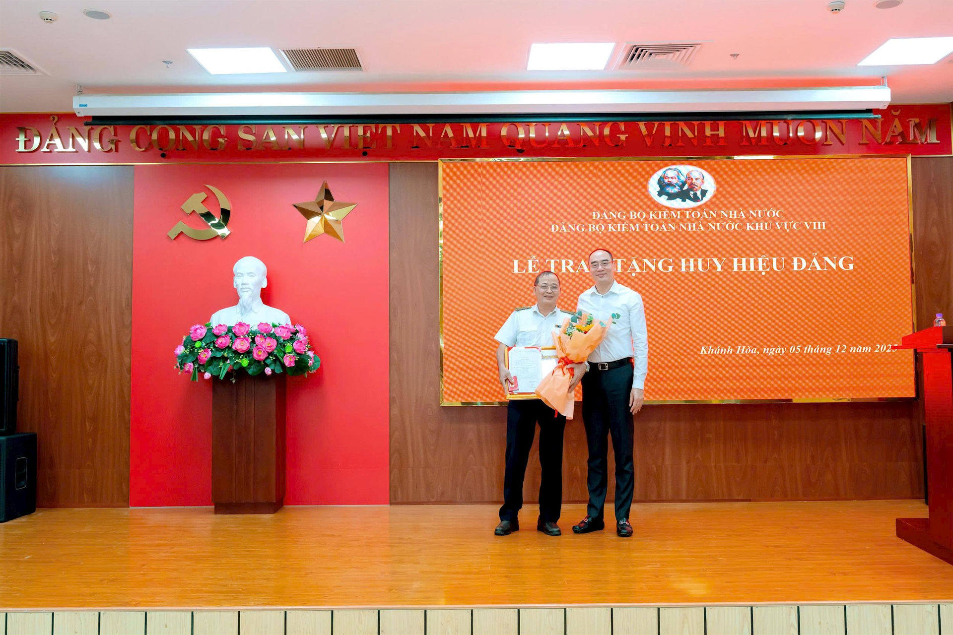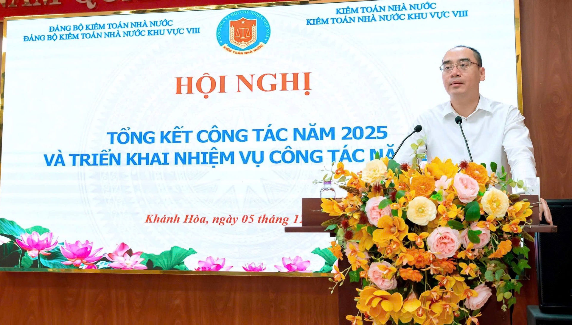 (sav.gov.vn) - Chiều 05/12, tại phường Nha Trang, tỉnh Khánh Hòa, Kiểm toán nhà nước (KTNN) khu vực VIII tổ chức Hội nghị tổng kết công tác và công tác Đảng năm 2025, phương hướng nhiệm vụ, chương trình công tác năm 2026 và Lễ trao tặng Huy hiệu 30 năm tuổi Đảng cho đồng chí Nguyễn Văn Giám.