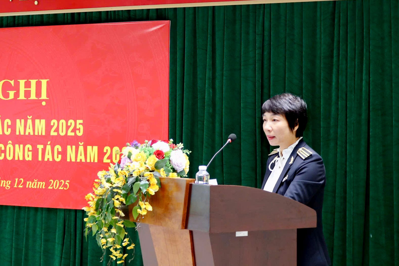 Phó Kiểm toán trưởng KTNN khu vực VI Nguyễn Thị Thắng báo cáo tổng kết năm 2025 và kế hoạch công tác năm 2026. Ảnh: Ngọc Tuấn