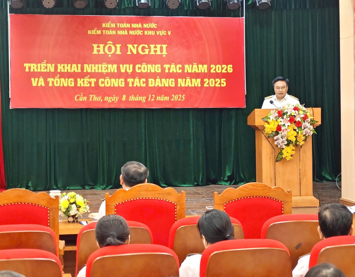 Chỉ đạo tại Hội nghị, Phó Tổng kiểm toán nhà nước Trần Minh Khương ghi nhận: KTNN khu vực V đã hoàn thành xuất sắc các nhiệm vụ năm 2025, cả về công tác chuyên môn và xây dựng Đảng.
