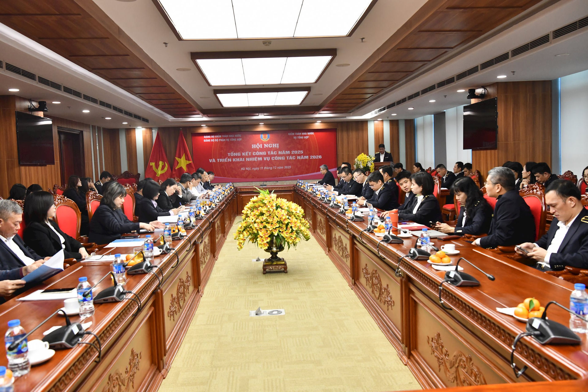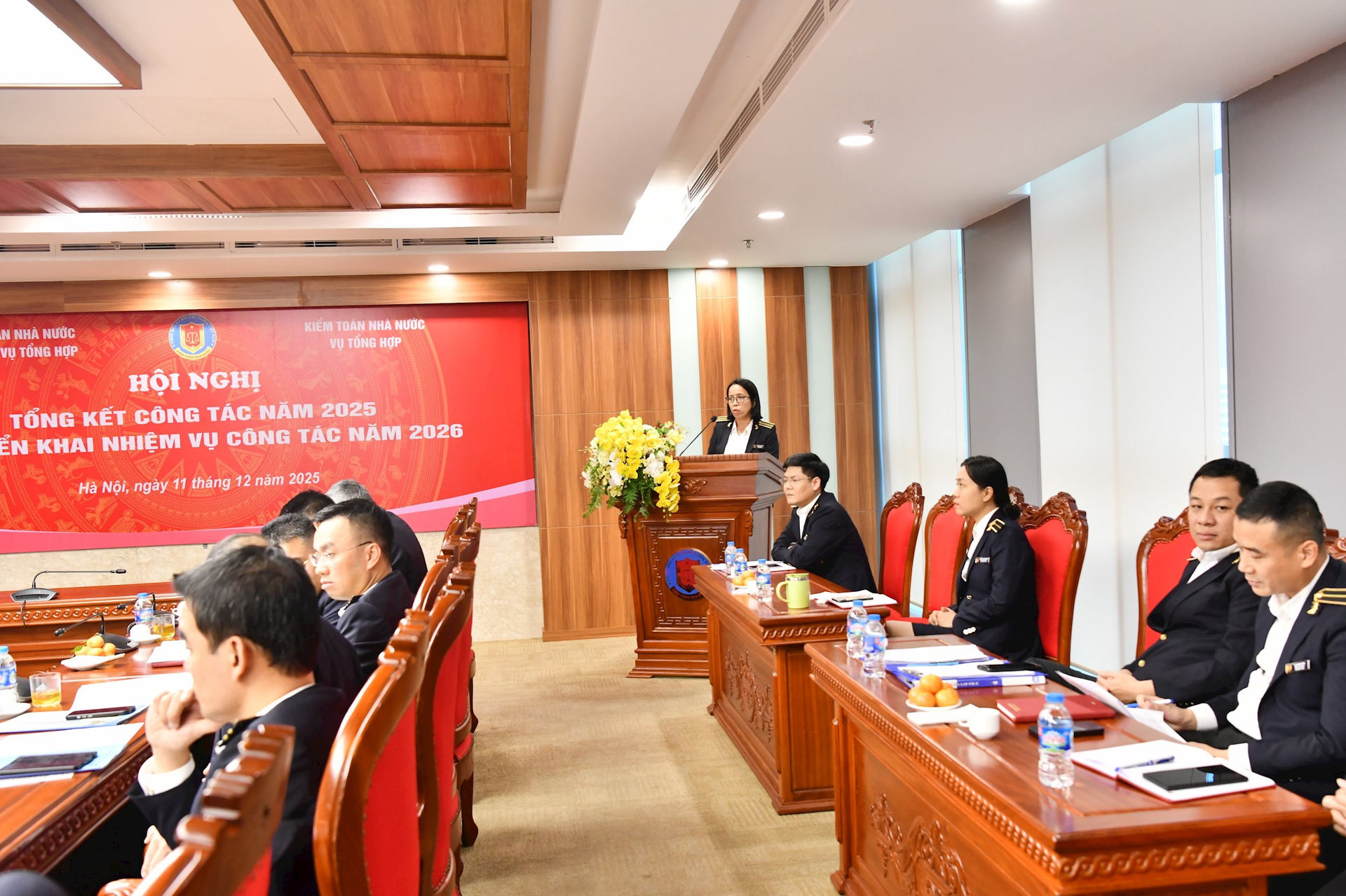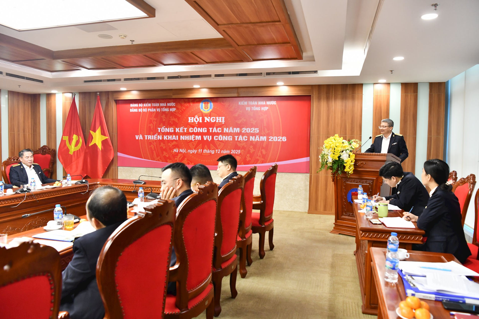 Phát biểu chỉ đạo Hội nghị, Phó Tổng Kiểm toán nhà nước Trần Minh Khương đã biểu dương và đánh giá cao những kết quả mà Vụ Tổng hợp đạt được trong năm 2025. Vụ Tổng hợp đã hoàn thành tốt và hoàn thành xuất sắc các nhiệm vụ tham mưu, điển hình như tham mưu ban hành KHKT năm; phương án tổ chức KHKT năm 2025 của toàn Ngành; tham mưu ban hành hướng dẫn nội dung và trọng tâm kiểm toán năm 2025 - năm có nhiều biến động khi thực hiện sắp xếp, tinh gọn bộ máy và tổ chức chính quyền 3 cấp, có sự cắt giảm, điều chỉnh, bổ sung các cuộc kiểm toán, nội dung kiểm toán…