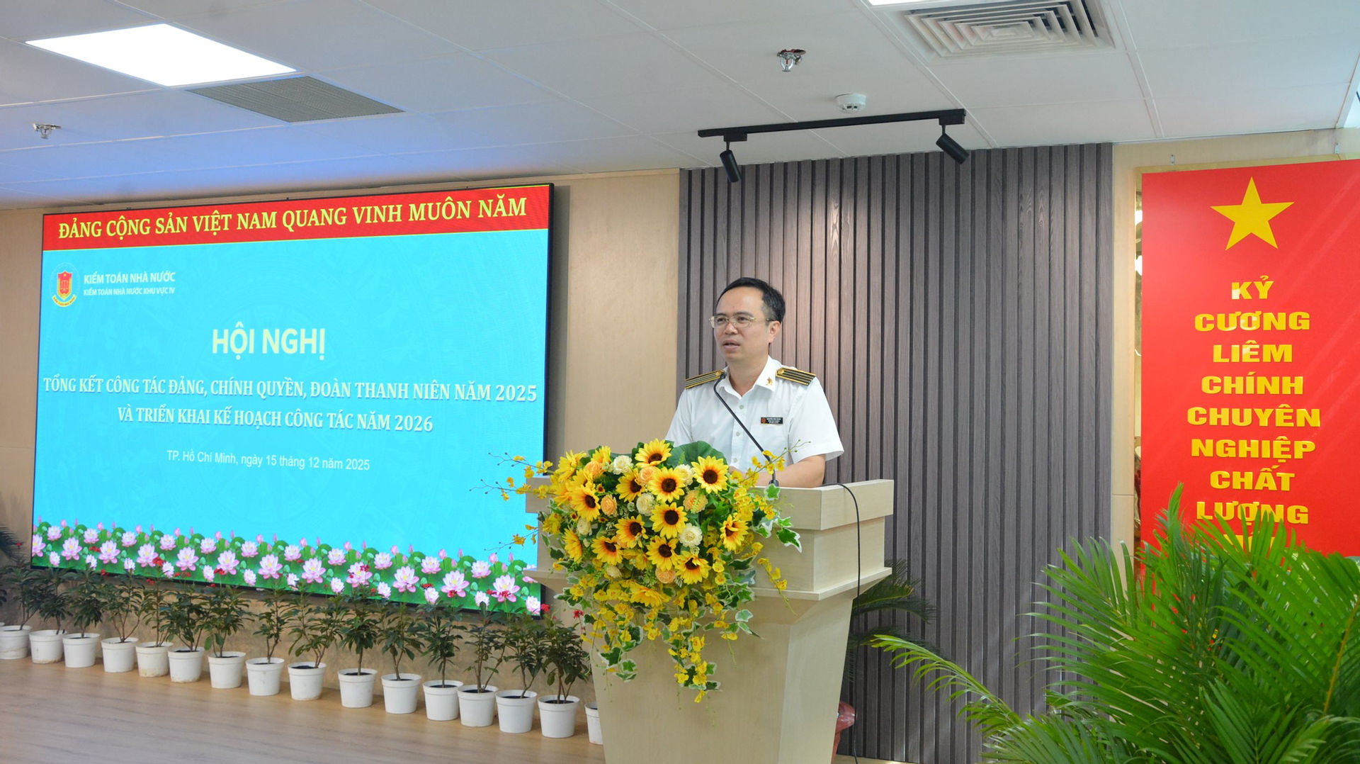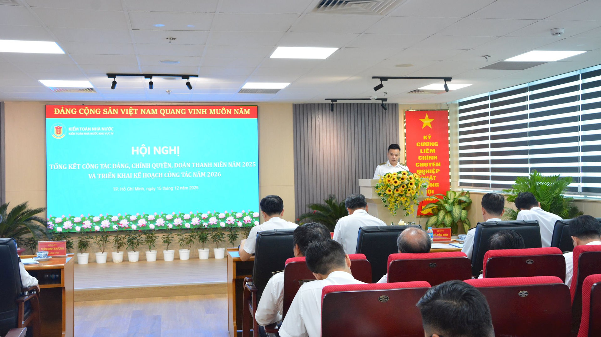 Sáng 15/12, tại TP.HCM, KTNN khu vực IV đã tổ chức Hội nghị Tổng kết công tác năm 2025 và triển khai chương trình công tác năm 2026. Phó Tổng Kiểm toán nhà nước Trần Minh Khương dự và phát biểu chỉ đạo Hội nghị.