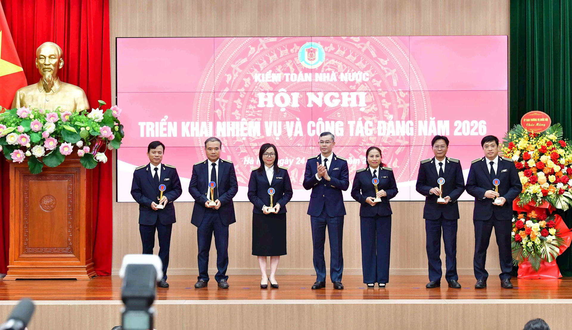 Tổng Kiểm toán nhà nước Ngô Văn Tuấn tặng “Cờ thi đua của KTNN” cho 8 tập thể cấp Vụ có thành tích xuất sắc trong phong trào thi đua năm 2025
