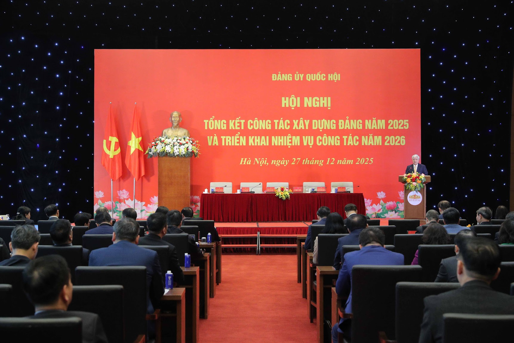 Tiếp tục lãnh đạo, chỉ đạo hiệu quả công tác xây dựng Đảng trong Đảng bộ Quốc hội; Kịp thời lãnh đạo, chỉ đạo, triển khai hiệu quả, tạo chuyển biến rõ nét về công tác tổ chức xây dựng Đảng; Tăng cường công tác kiểm tra, giám sát và thi hành kỷ luật, giữ nghiêm kỷ cương, kỷ luật của Đảng. Đổi mới và nâng cao năng lực lãnh đạo của các cấp ủy, tổ chức đảng trên cơ sở thực hiện nghiêm túc Quy chế làm việc và triển khai có hiệu quả Chương trình công tác năm 2026. Tiếp tục đẩy mạnh ứng dụng công nghệ thông tin, chuyển đổi số trong hoạt động của Quốc hội và Đảng ủy Quốc hội…