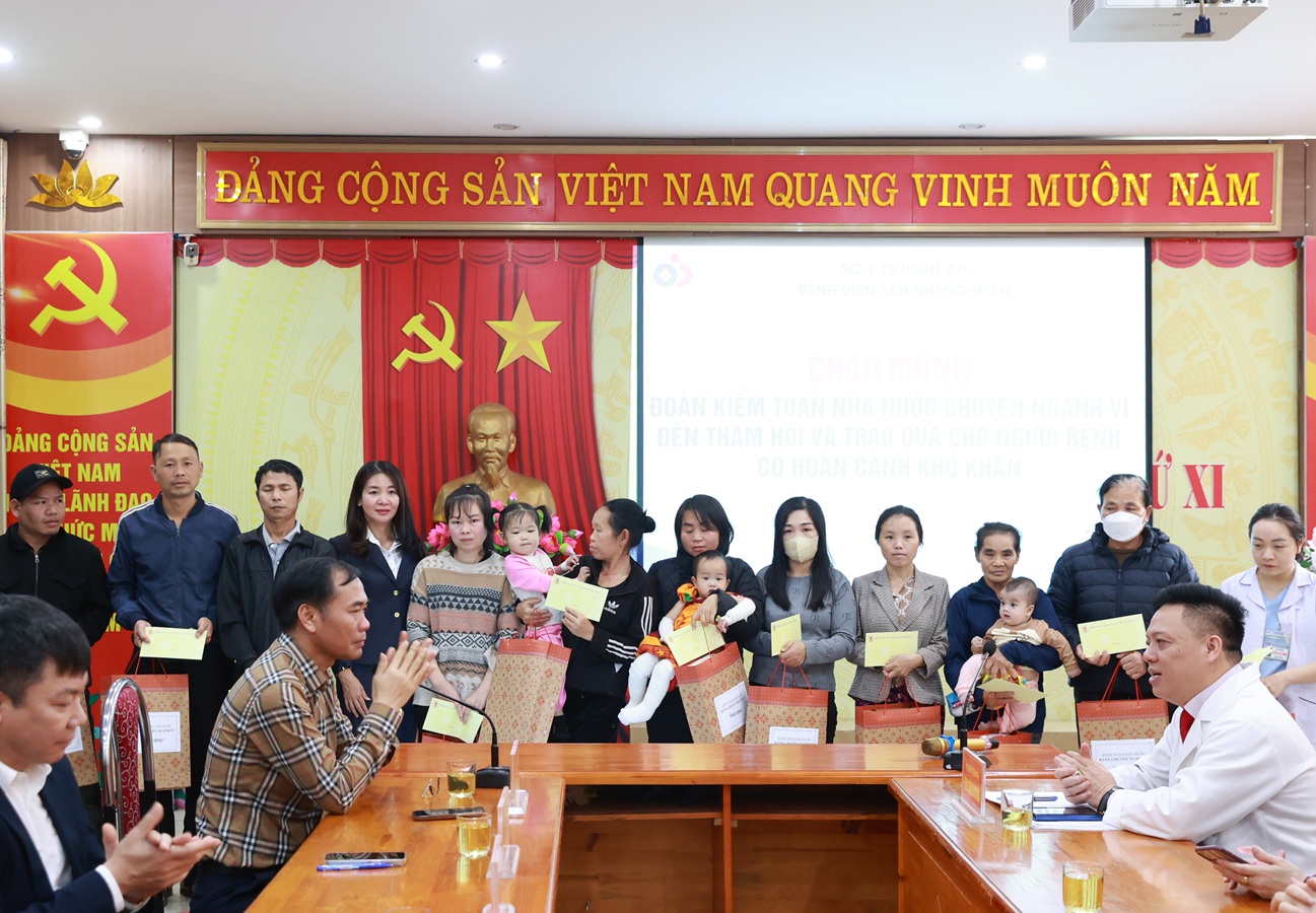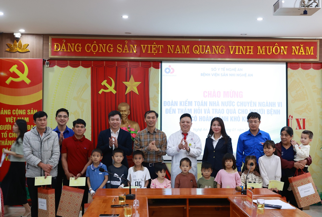 (sav.gov.vn) - Ngày 15/01, tại tỉnh Nghệ An, Kiểm toán nhà nước (KTNN) chuyên ngành VI đã tổ chức chương trình thiện nguyện, thăm hỏi và trao quà cho các bệnh nhi có hoàn cảnh khó khăn đang điều trị tại Bệnh viện Sản Nhi Nghệ An.