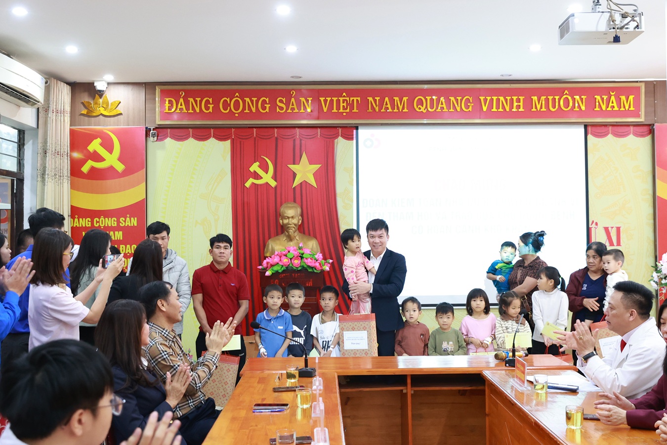 Đoàn công tác trao quà cho các bệnh nhi có hoàn cảnh khó khăn đang điều trị tại Bệnh viện.