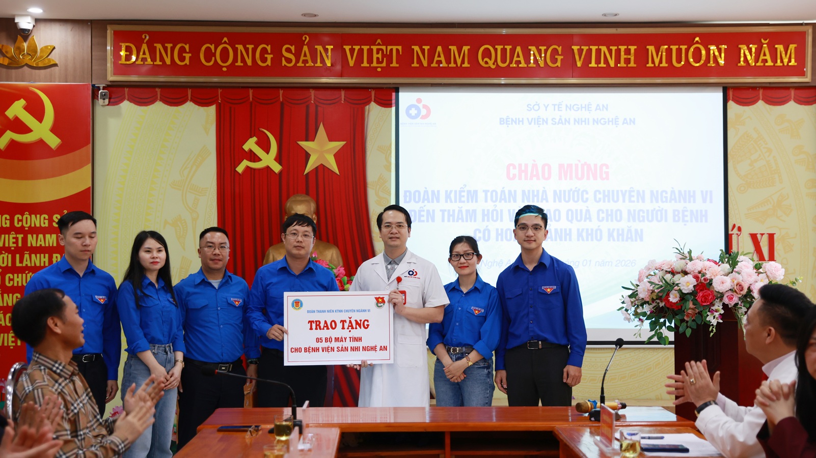 Bên cạnh đó, hưởng ứng Chương trình “Máy tính cho em”, Đoàn Thanh niên KTNN chuyên ngành VI đã trao tặng 5 bộ máy tính cho Bệnh viện Sản Nhi Nghệ An nhằm phục vụ công tác chuyên môn, đồng thời tạo điều kiện để các bệnh nhi có cơ hội tiếp cận, làm quen và sử dụng máy tính trong thời gian điều trị.