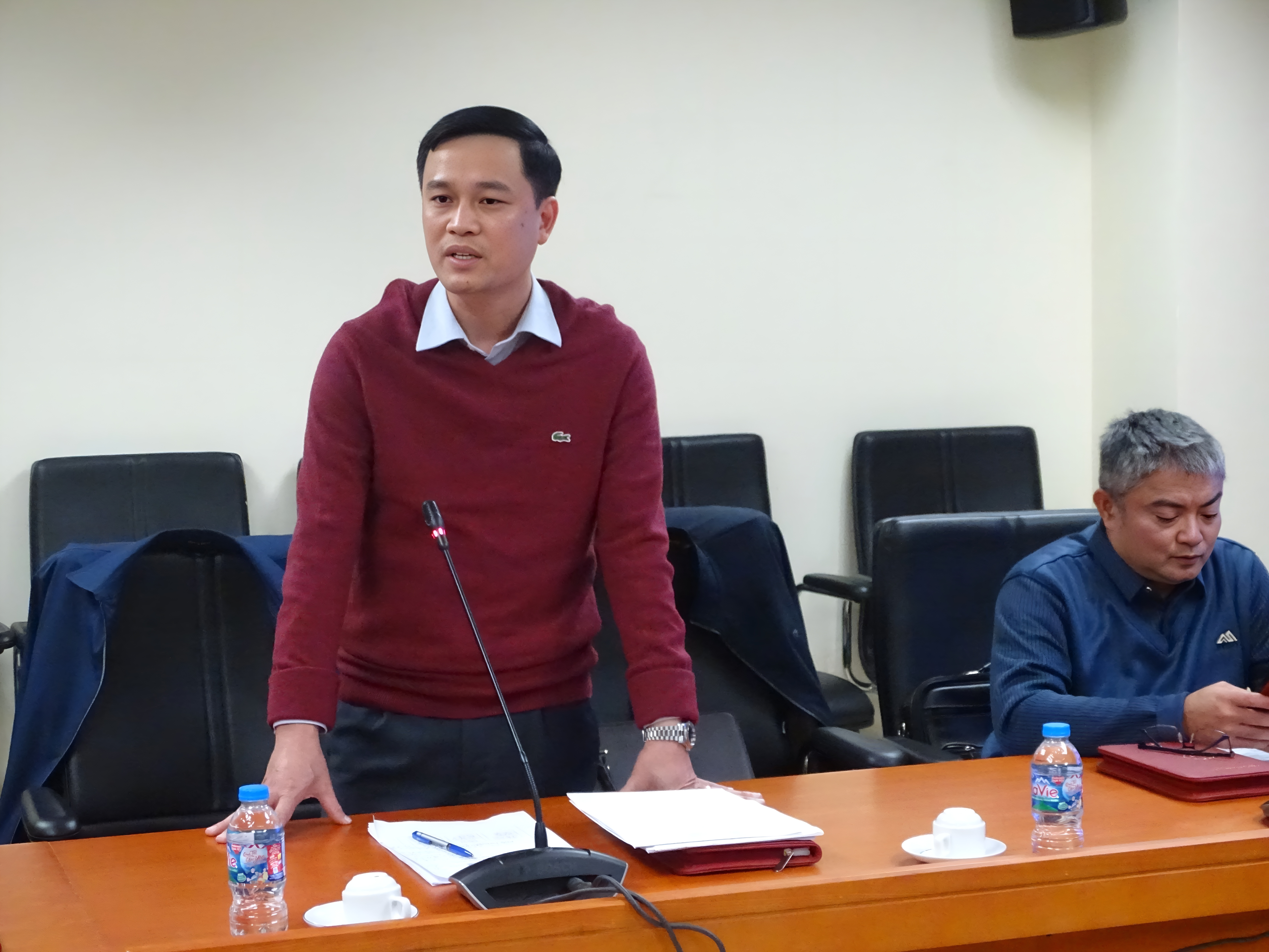 Thượng tá, PGS,TS. Phạm Tiến Dũng - Trưởng Khoa Cảnh sát điều tra tội phạm về tham nhũng, kinh tế, buôn lậu, môi trường, Học viện Cảnh sát nhân dân trao đổi tại buổi tập huấn