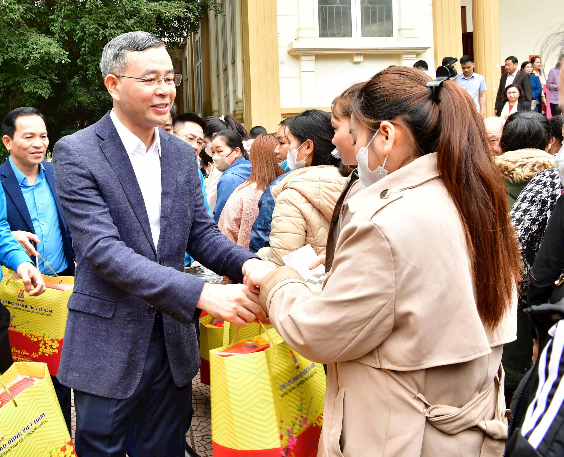 Tổng Kiểm toán nhà nước Ngô Văn Tuấn tặng quà cho công nhân, người lao động