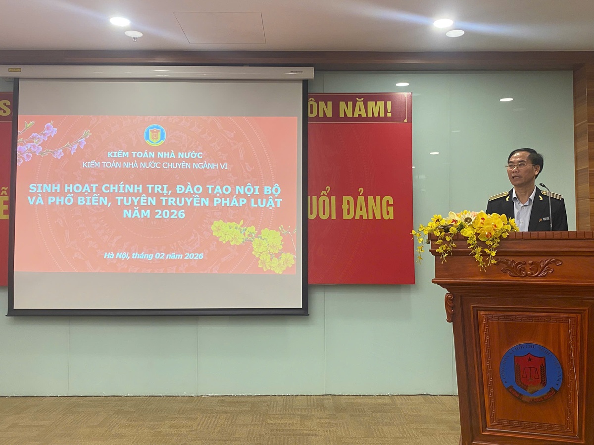 Phó Kiểm toán trưởng Nguyễn Đình Hòa yêu cầu toàn thể công chức, người lao động tiếp thu toàn diện ý kiến chỉ đạo của đồng chí Bí thư Đảng ủy, Kiểm toán trưởng; thực hiện nghiêm các quy định của Đảng, của Nhà nước, tuân thủ đầy đủ quy định của Luật KTNN, Hệ thống Chuẩn mực KTNN, Quy chế, Quy trình và Nghị quyết số 772-NQ/ĐU của Đảng ủy KTNN, Chỉ thị số 49/CT-KTNN của Tổng KTNN, Văn bản số 135/KTNN-TH của KTNN... Lãnh đạo cấp phòng, toàn thể công chức và người lao động đoàn kết, khắc phục khó khăn, thử thách, cùng tập thể cấp ủy và lãnh đạo KTNN chuyên ngành VI quyết tâm phấn đấu hoàn thành toàn diện nhiệm vụ chính trị năm 2026./.