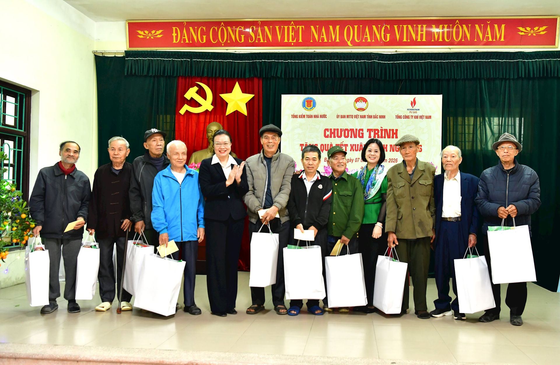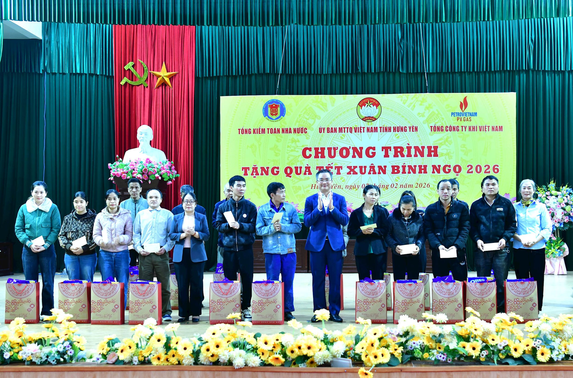 (sav.gov.vn) - Ngày 07/02, Kiểm toán nhà nước (KTNN) phối hợp với Ủy ban Mặt trận Tổ quốc (MTTQ) Việt Nam 2 tỉnh Hưng Yên, Bắc Ninh và Tổng Công ty Khí Việt Nam (PV GAS) tặng 700 suất quà Tết cho các gia đình chính sách, người cao tuổi, hộ nghèo, hộ cận nghèo, công nhân, người lao động có hoàn cảnh khó khăn trên địa bàn 2 xã Yên Mỹ và Liên Bão nhân dịp Xuân Bính Ngọ 2026.