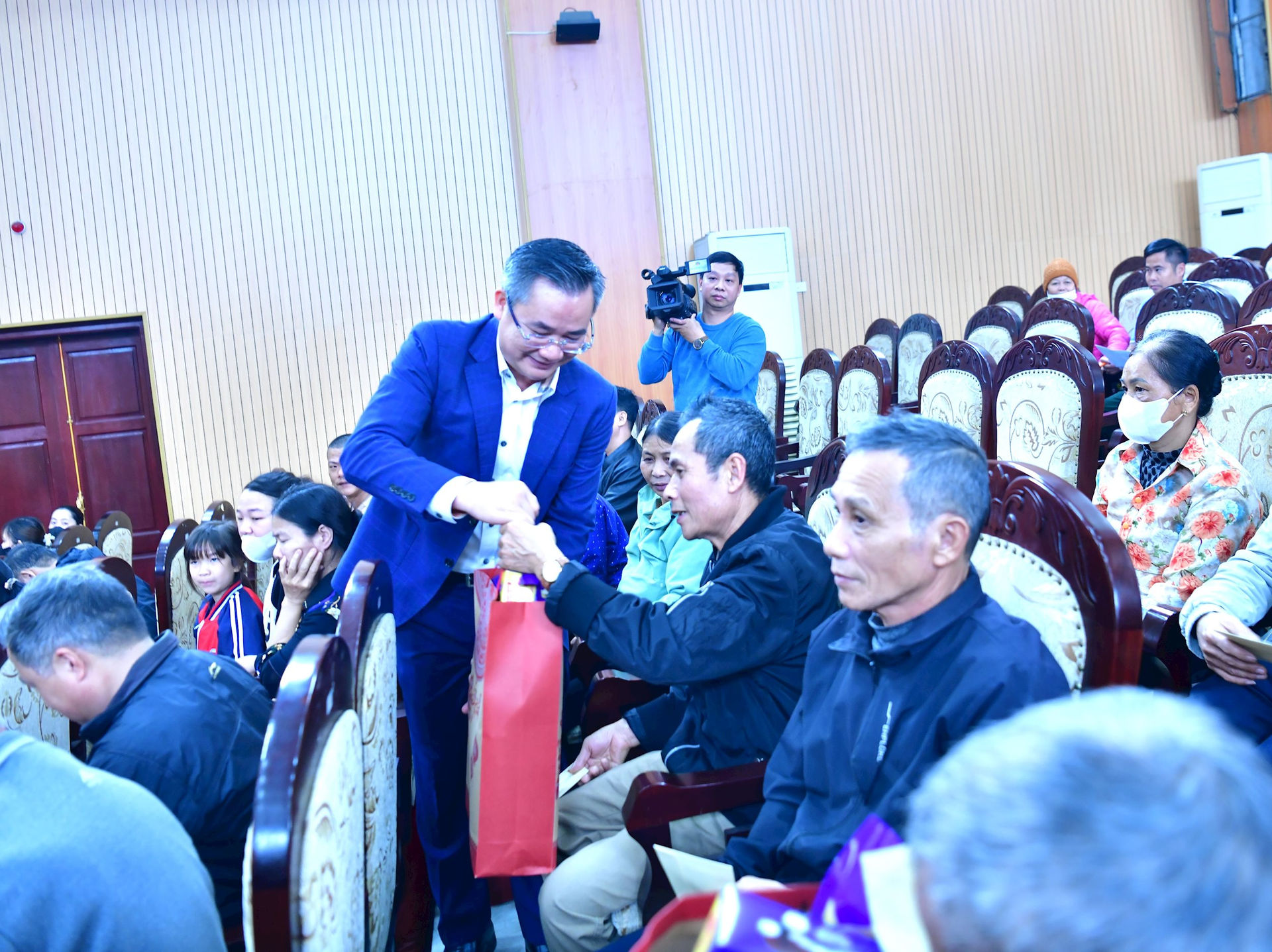 Đoàn công tác tặng 400 suất quà Tết cho hộ nghèo, hộ cận nghèo, hộ có hoàn cảnh khó khăn, công nhân, người lao động có hoàn cảnh khó khăn trên địa bàn xã Yên Mỹ (Hưng Yên). Ảnh: HỒNG NHUNG