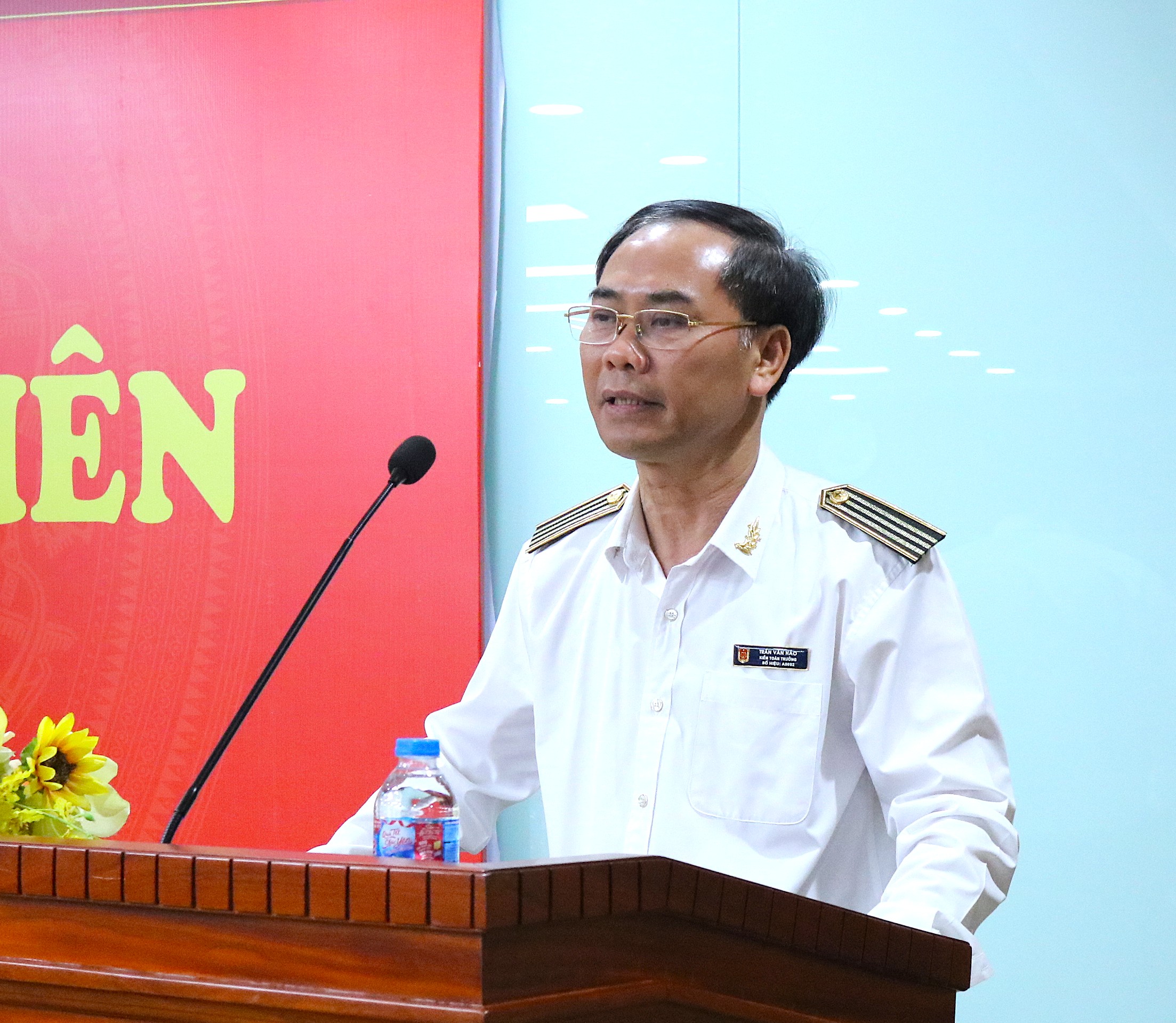 Kiểm toán trưởng KTNN chuyên ngành VI Trần Văn Hảo phổ biến các nội dung về kết quả Đại hội đại biểu toàn quốc lần thứ XIV của Đảng và các hoạt động triển khai Nghị quyết Đại hội. Ảnh: N.Ly