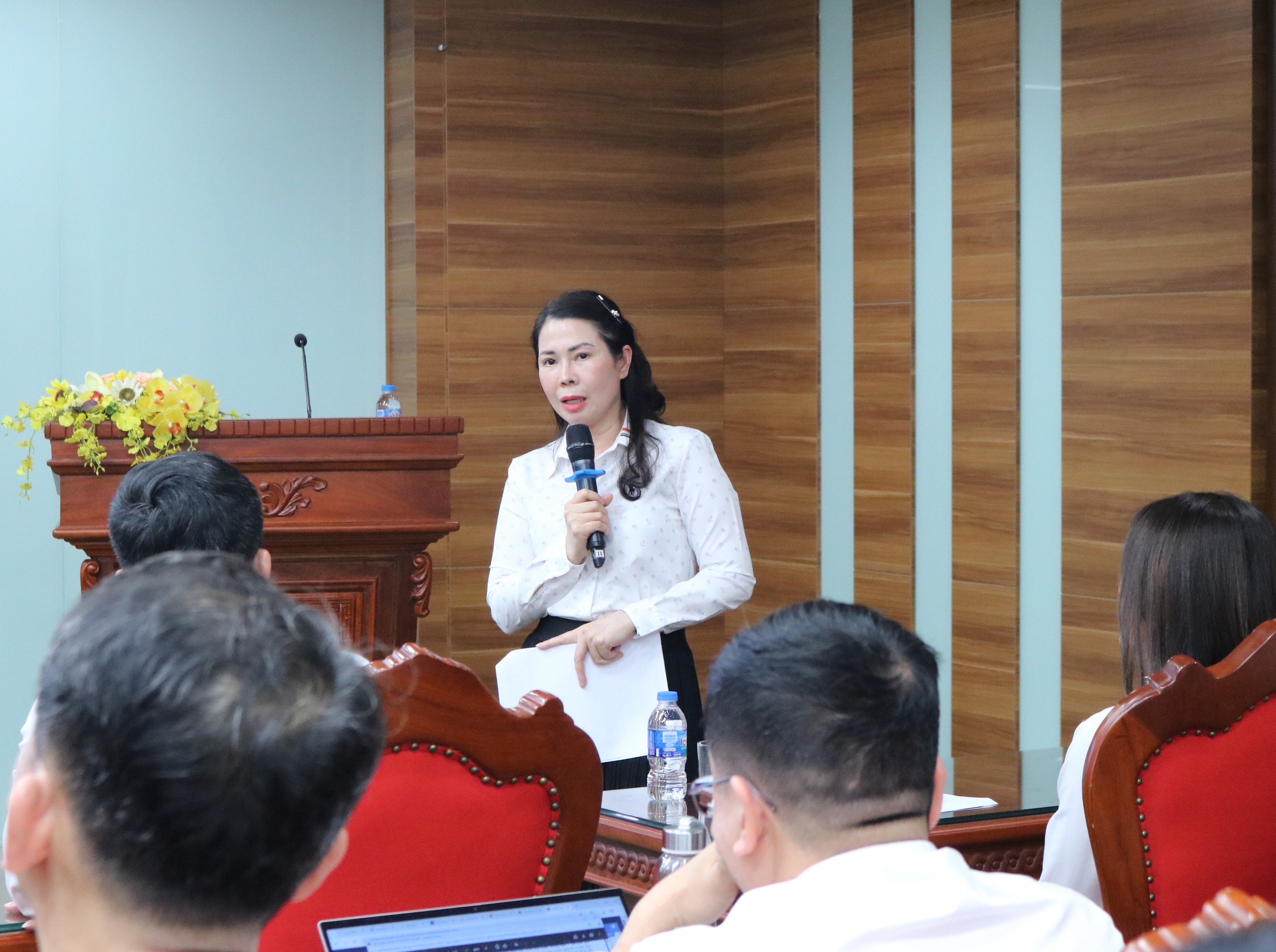 Bà Trương Hải Yến - Phó Vụ trưởng Vụ Chế độ và Kiểm soát chất lượng kiểm toán - thông tin về Hệ thống hồ sơ mẫu biểu và quy chế kiểm soát chất lượng kiểm toán. Ảnh: N.Ly