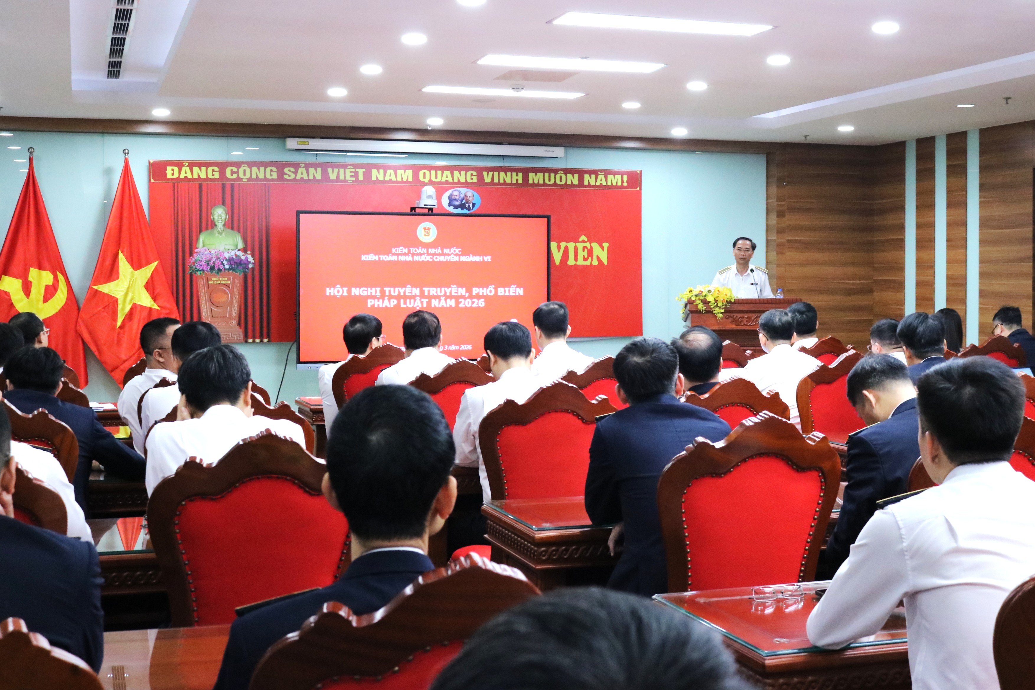 (sav.gov.vn) - Ngày 11/3, Kiểm toán nhà nước (KTNN) chuyên ngành VI tổ chức Hội nghị tuyên truyền pháp luật và tập huấn chuyên môn, nghiệp vụ cho toàn thể công chức, kiểm toán viên trong đơn vị.